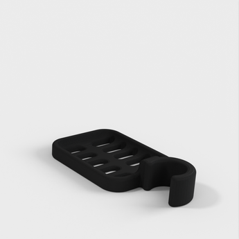 Duschsåphållare designad för att klämmas fast på duschstången. Såphållaren är speciellt designad för att passa på en rund stång med en diameter på 21,9mm. Tänk på att såphållaren är lite mindre i storlek. Det rekommenderas inte att använda PLA om möjligt, eftersom kroken riskerar att brytas ner efter en tid, särskilt i duschmiljö. ABS-plast rekommenderas som mer hållbart material för denna produkt.