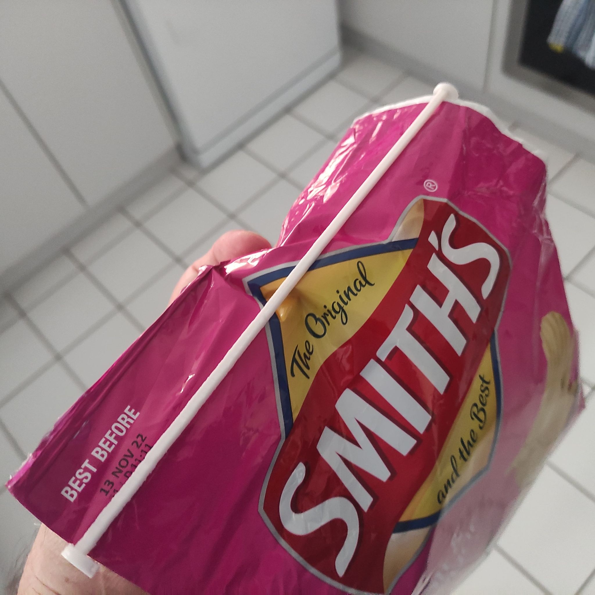 Dette er en klips til chipsposer i enten en- eller todelt version, der kan hjælpe med at holde posen lukket og chipsene friske. Den eksterne klip kan printes som den er, mens det sekundære element hjælper med at rulle posen stramt op. Denne nemme løsning hjælper med at forlænge dine chips' levetid og opretholde deres sprødhed.