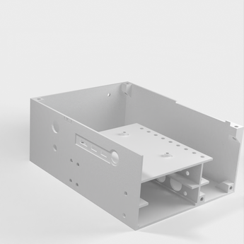 Desktop Case til Raspberry Pi 4B med indbygget plads til en 5V 4A strømforsyning og op til 2 SATA-diske. Der er også opbevaringsplads til eget udstyr.