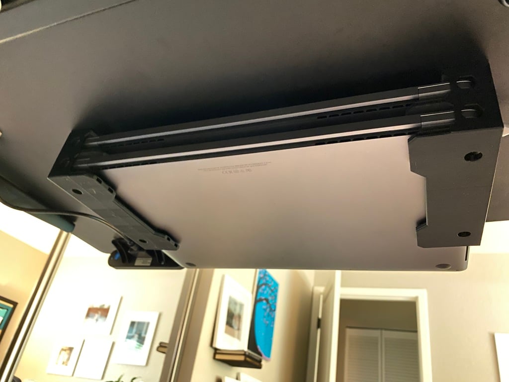 Frigør værdifuld plads på dit skrivebord med denne effektive dobbelte laptop under-skrivebordsholder. Denne holder er designet til at give en sikker og let tilgængelig opbevaring til to bærbare computere, hvilket gør den ideel til at adskille arbejds- og personlige enheder eller blot organisere dit digitale setup. Den er en kompakt løsning for et mere ryddeligt arbejdsområde.