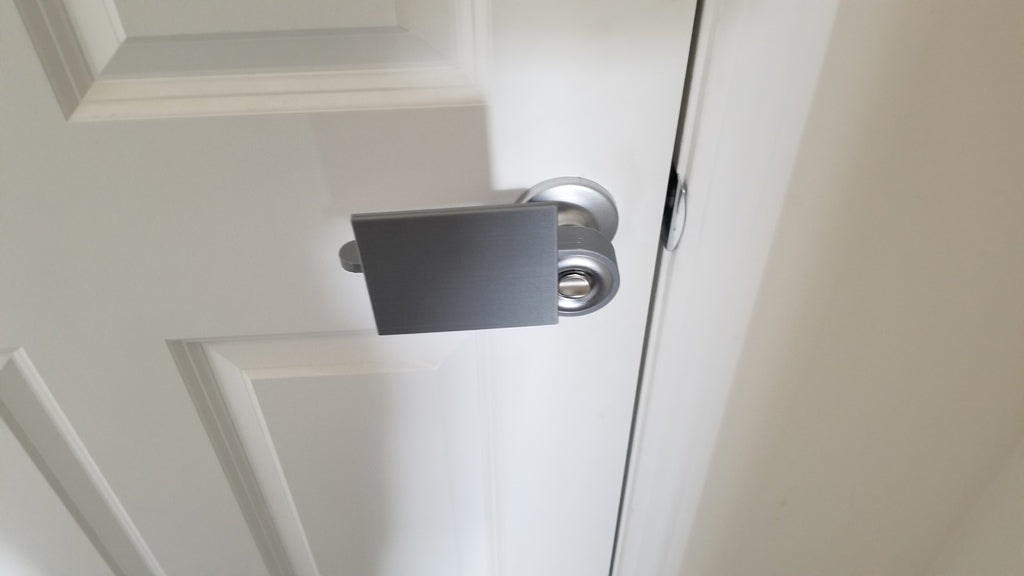 Dette adapter til døråbner er designet til at passe på en 47mm dørknap, så du kan åbne døren ved hjælp af din arm (ærme) i stedet for din hånd. Monteres med 3mm maskinskruer. Du kan tilføje noget lim til knappen for at få ekstra friktion, så det ikke glider.