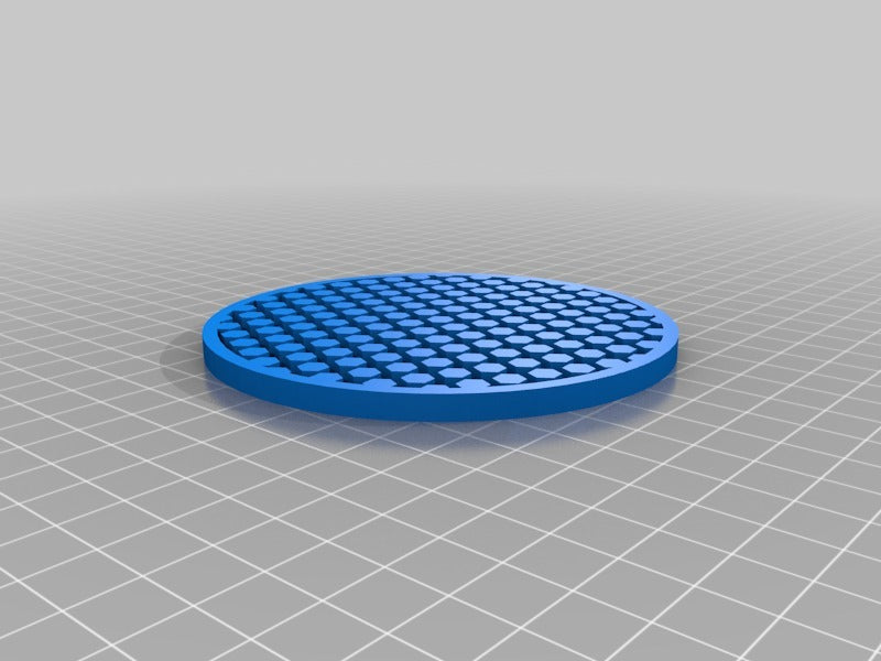 Dette er en simpel cirkulær coaster med et 'fyld' af sekskantede søjler. Den er ideel til at placere din kop eller glas på, for at beskytte dine møbler fra varme og kold drikke.