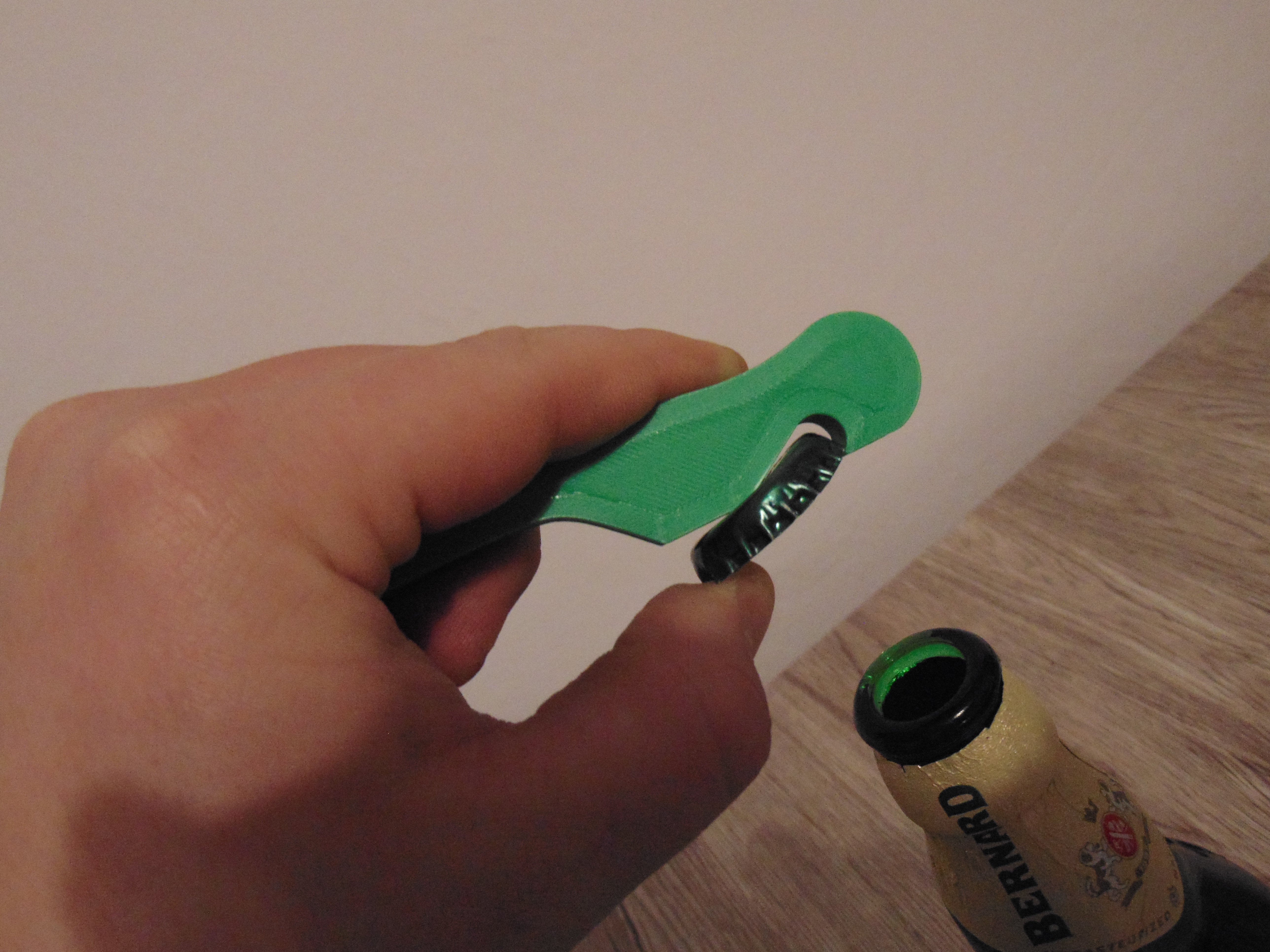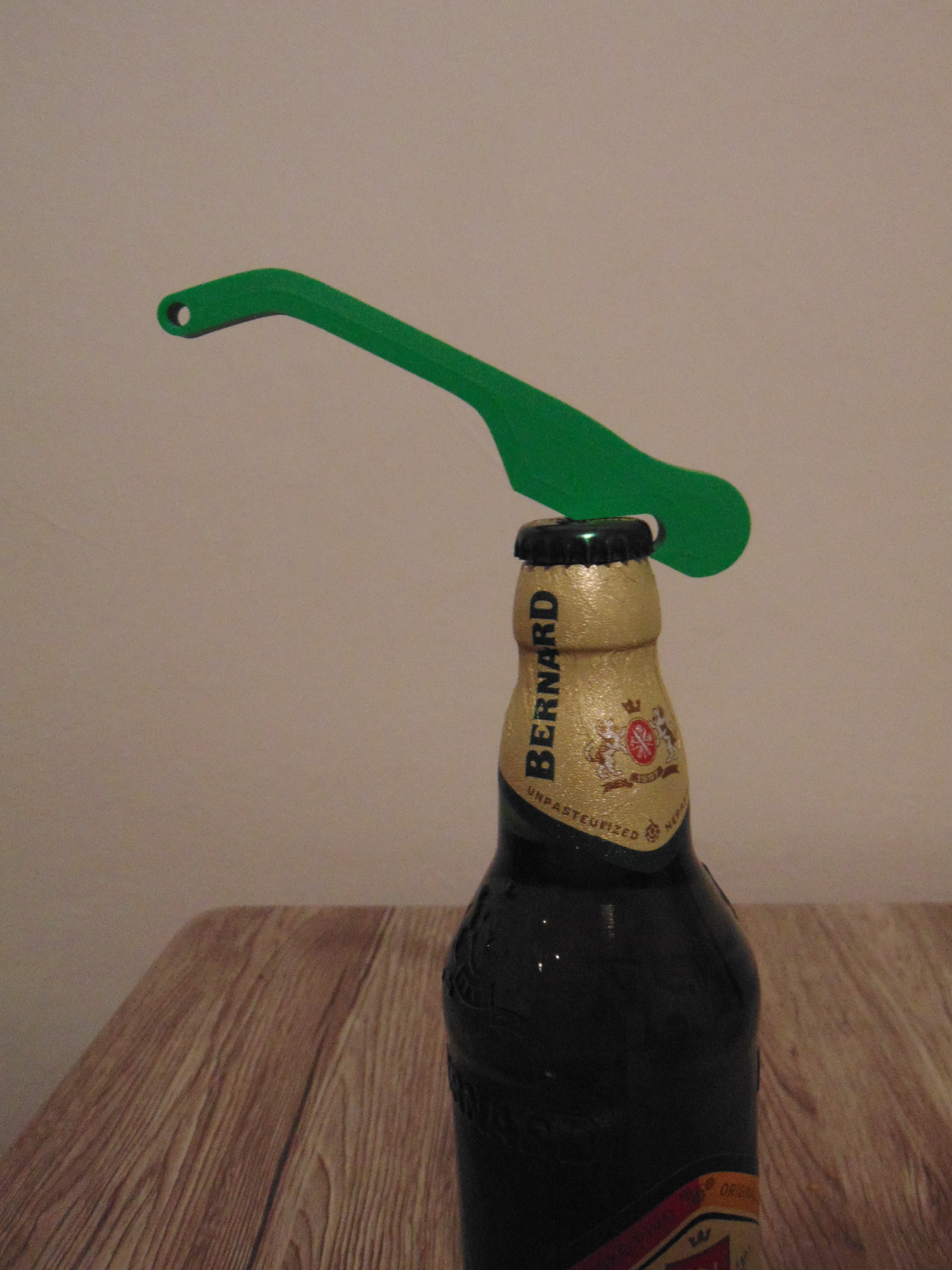 Enkel øloplukker i PLA materiale. Denne oplukker er designet med en dyse på 0,4 mm, en temperatur på 200/60 °C, et lag på 0,3 mm, 10 perimeters og et infill på 40%. Dette giver oplukkeren den nødvendige styrke og holdbarhed til at åbne dine ølflasker.