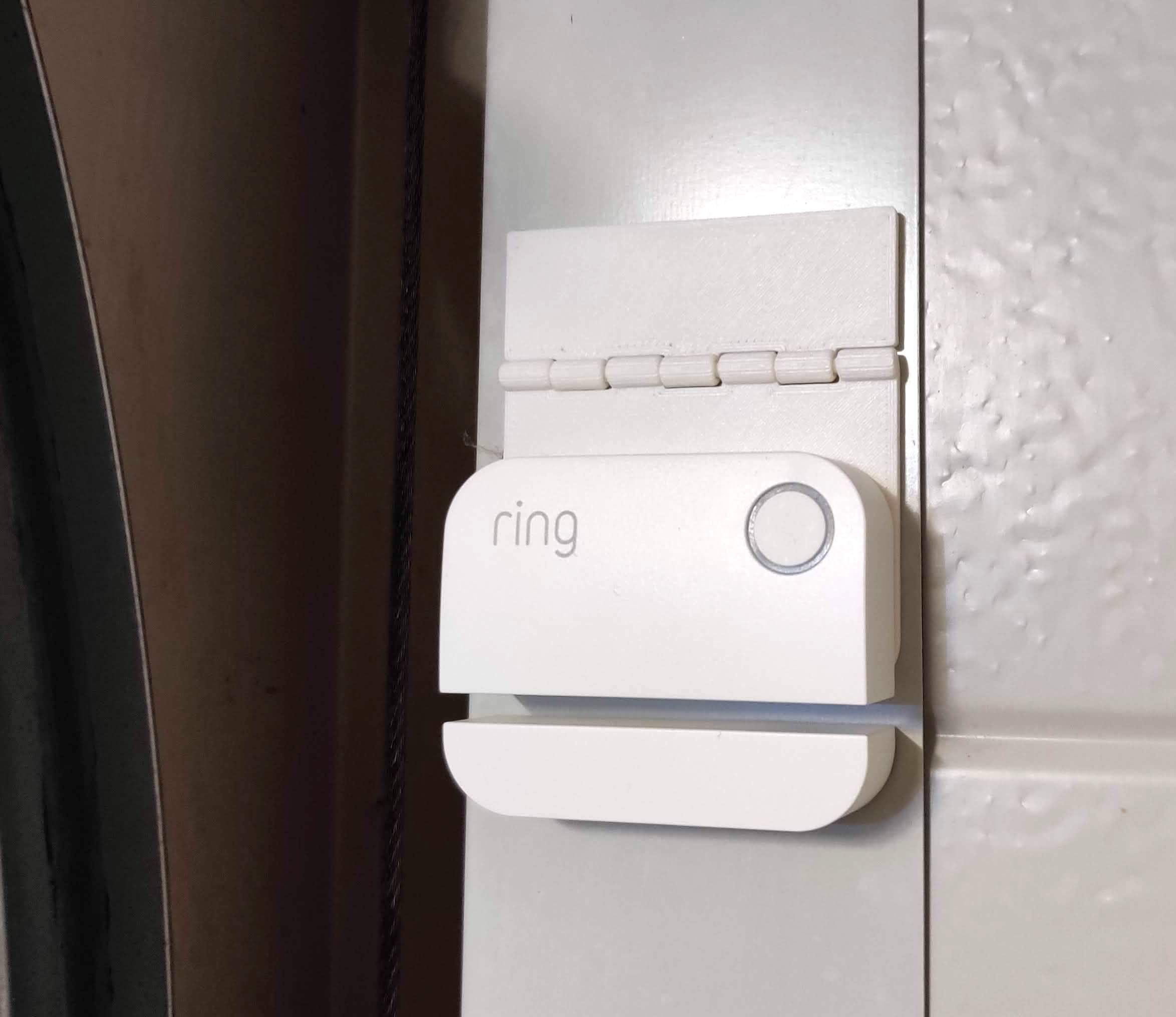 Garage dør adapter til 2. gen Ring Alarm Contact Sensor er en nem og hurtig løsning til at sikre din garage dør. Monter Ring kontakt sensoren (den større del) med det medfølgende selvklæbende tape til den længere flip af hængslet, lige på kanten. Brug et stykke dobbeltklæbende tape eller lignende materiale til den kortere hængsel flip på bagsiden, for at fastgøre det til garagedøren. Kontaktsensorens magnet går lige under den (fastgør den med det inkluderede selvklæbende direkte til garagedøren), efterlad omkring 2-3mm mellem dem, da der er en mindre magnetisk tiltrækning. Dette design er baseret på Parametric Hinge scad. Parametrene er fintunet for at passe til Ring Alarm Contact Sensor og et nødvendigt sving, og en af klapperne blev skåret for at gøre den mindre.