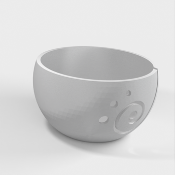 Gårnskål der er designet til at holde dit garn og levere en tråd, mens du strikker eller hækler. Har et dekorativt spiralmønster som tråden kommer ud af.