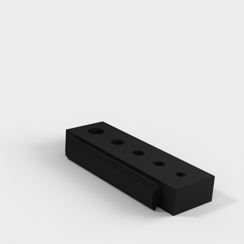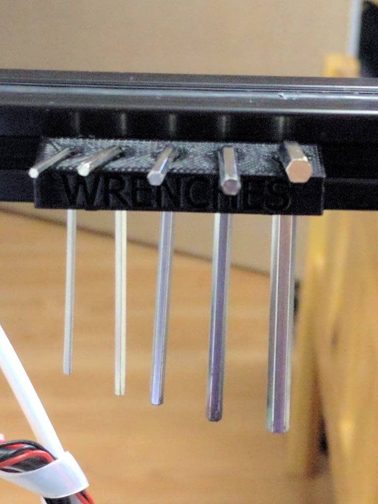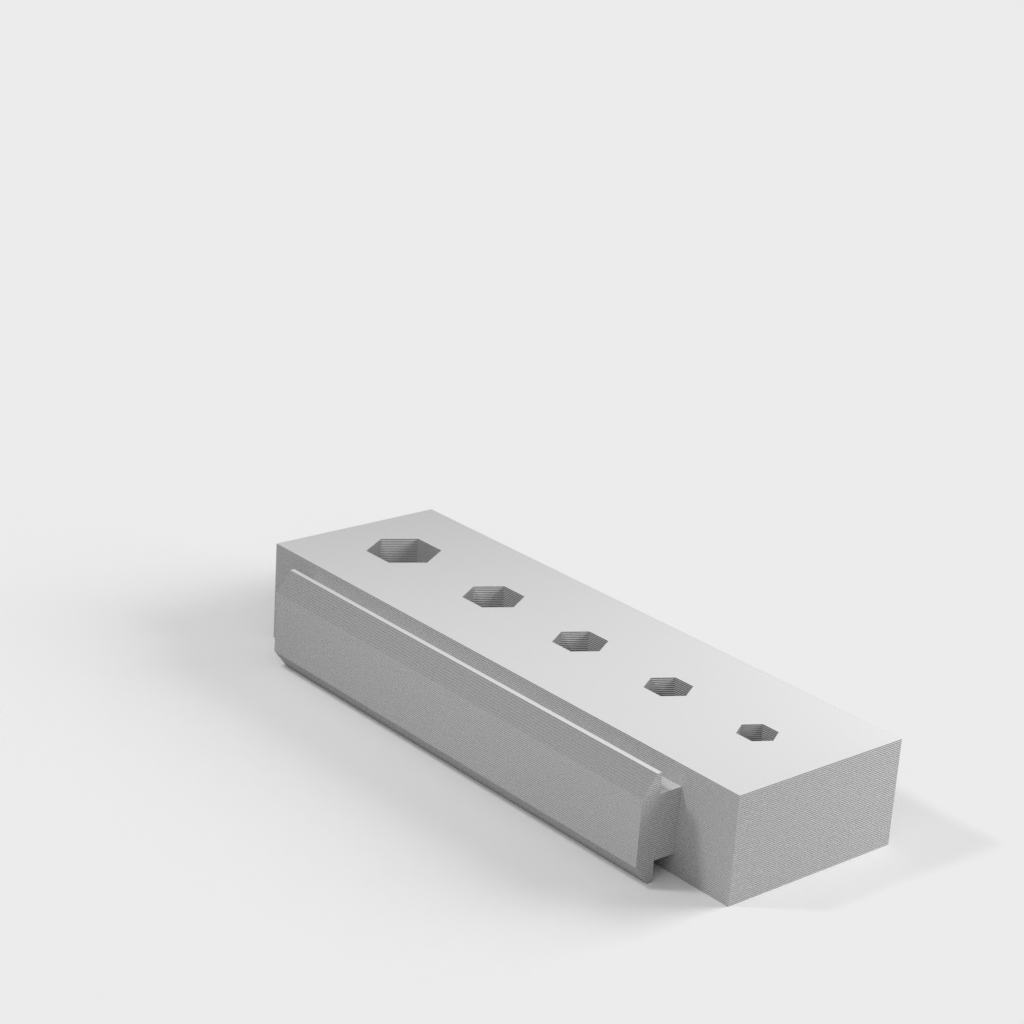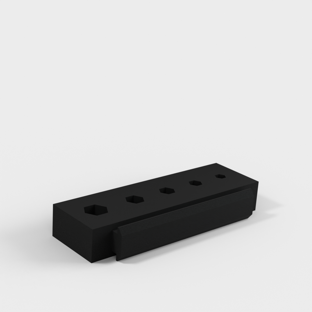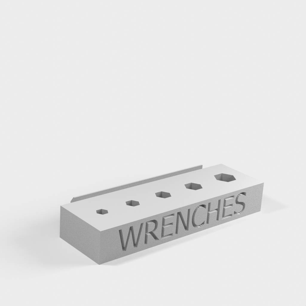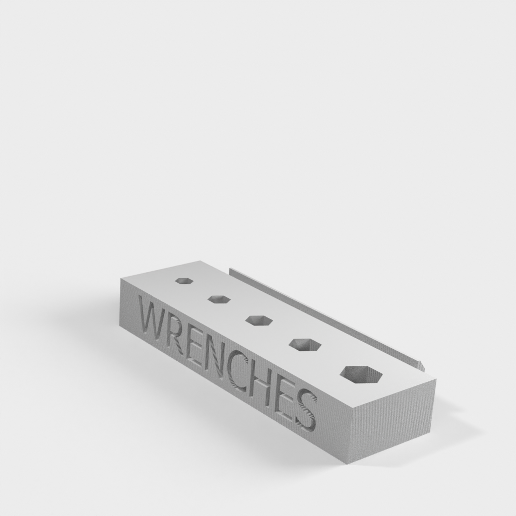 Hex Wrench-holder er designet til at holde et sæt af 5 standard Allen nøgler eller Hex nøgler, der oftest følger med de fleste 3D-printere. Dette værktøj er praktisk idé, da det kan hænge direkte på 3D-printeren for nem adgang.