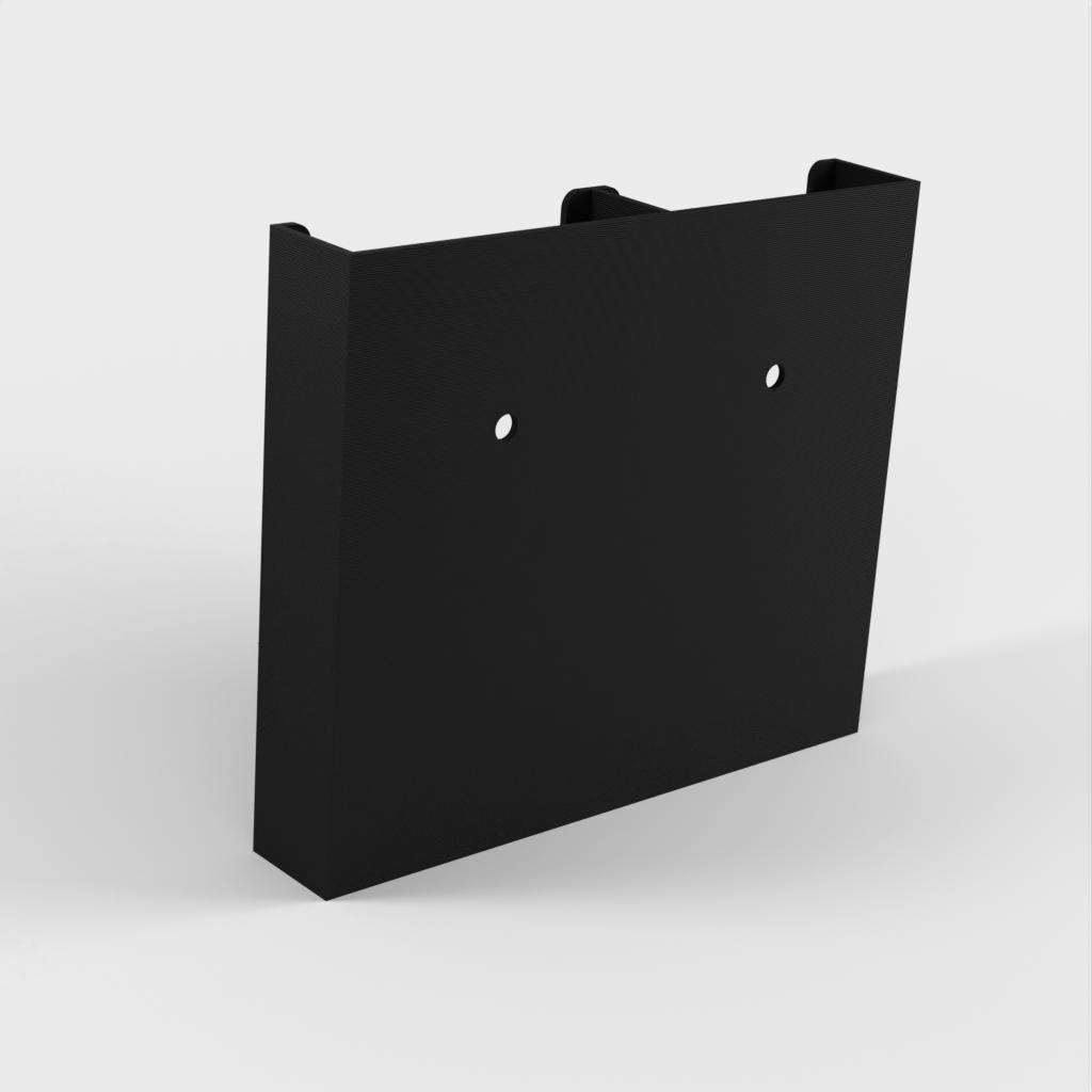 Dette er en simpel holder, der kan rumme 2 fjernbetjeninger. Den kan installeres enten vertikalt eller horisontalt. Du kan fastgøre det enten med to skruer eller med dobbeltsidet tape, alt efter hvad der passer bedst ind i dit hjem.