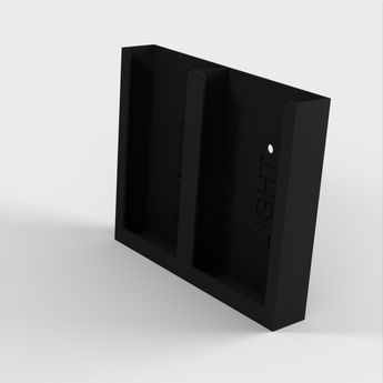 Dette er en simpel holder, der kan rumme 2 fjernbetjeninger. Den kan installeres enten vertikalt eller horisontalt. Du kan fastgøre det enten med to skruer eller med dobbeltsidet tape, alt efter hvad der passer bedst ind i dit hjem.