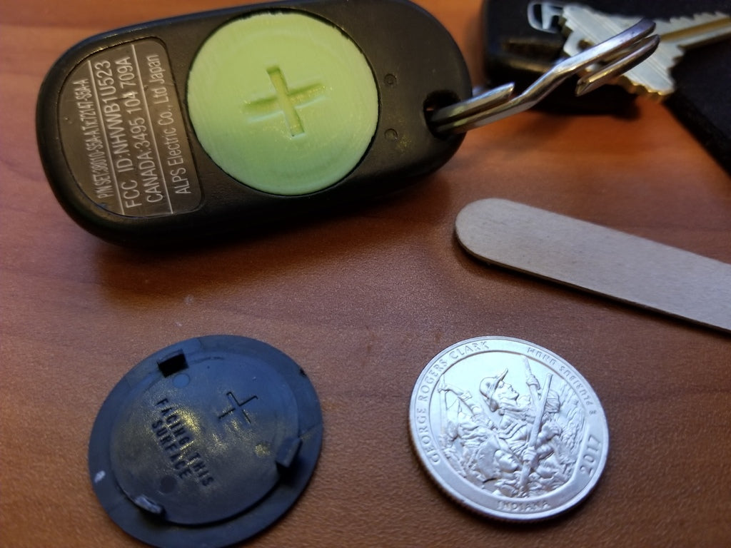 Skiftbart batteridæksel til en Honda fjernbetjent dørlåsnøgle. Produktet inkluderer to forskellige versioner til forskellige batteristørrelser.