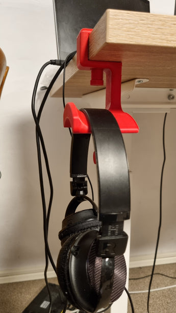Fastgørelsen er robust og sikrer, at dine hovedtelefoner forbliver sikkert på plads. Det er den perfekte løsning for gamere, studerende, hjemmekontorer eller enhver, der ønsker at opnå et mere struktureret og strømlinet miljø. Sig farvel til rodede kabler og beskadigede hovedtelefoner, og byd velkommen til et organiseret og funktionelt skrivebord.