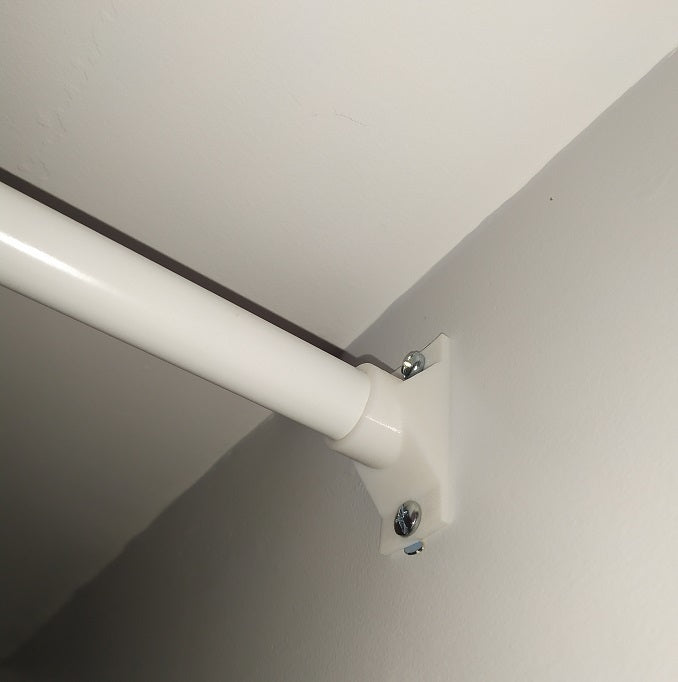 Holderen er designet til Ikea RÄCKA gardinstænger. Det betyder, at du kan sætte din gardinstang op uden behov for skruer. Du skal blot indsætte stangen i holderen, og det sidder stramt fast.