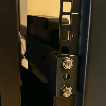 Beslag til rackmontering af din Intel NUC på siden af en standard 19" rack. Bagpladen er tynd nok til at monteres på NUC'en med de medfølgende bolte.