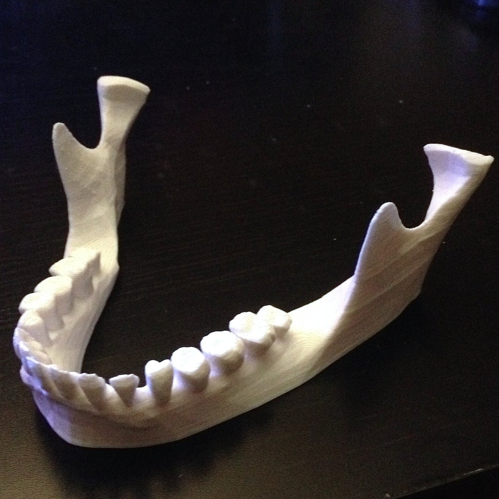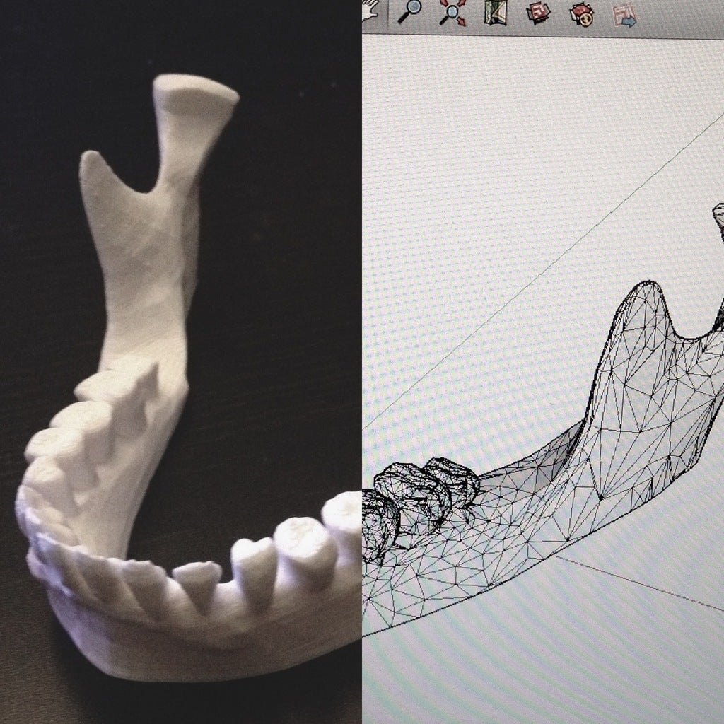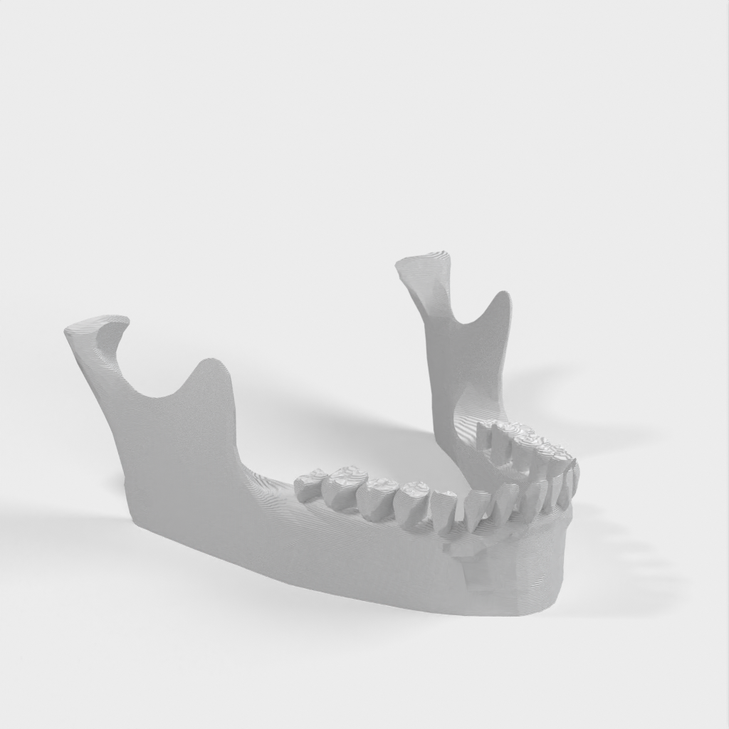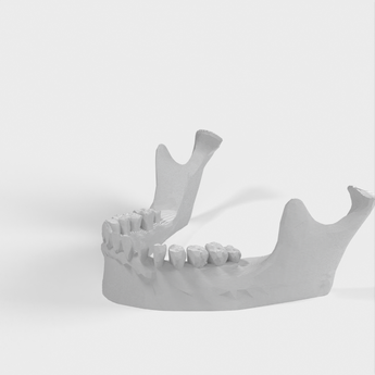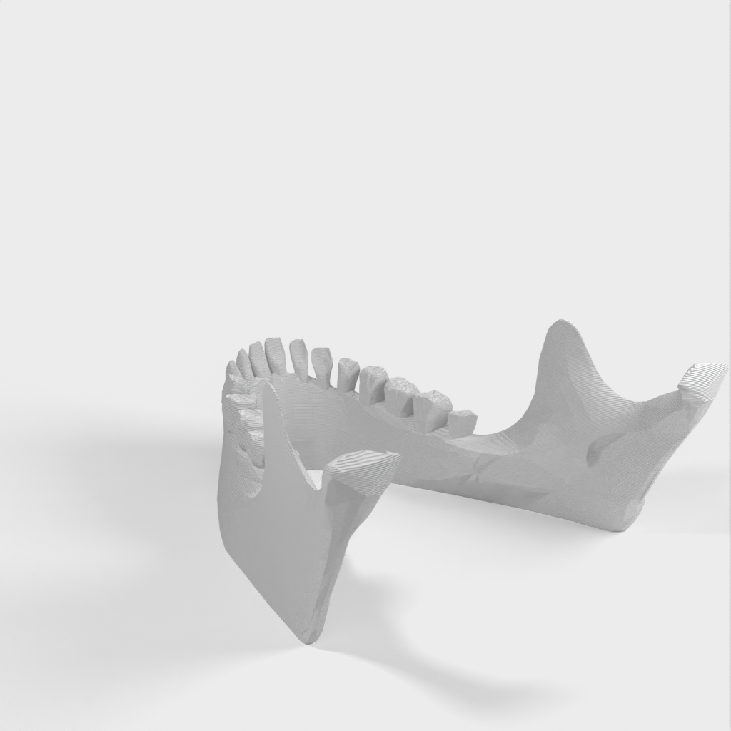 Model af en menneskekæbe der også kan fungere som et stativ til din iPad.