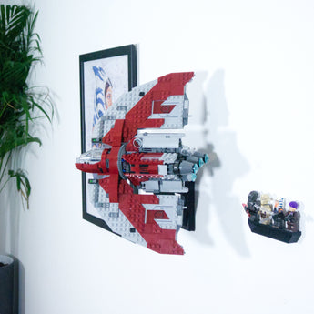 Fremvis din LEGO Ahsoka Tano T-6 Jedi Shuttle sikkert med dette justerbare vægbeslag. Det har flere visningsvinkler og kan monteres på begge sider af skibet. Sættet sidder fast, men er nemt at tage ned igen. Der medfølger et separat beslag til minifigurer, som opsættes enkelt ved siden af modellen.