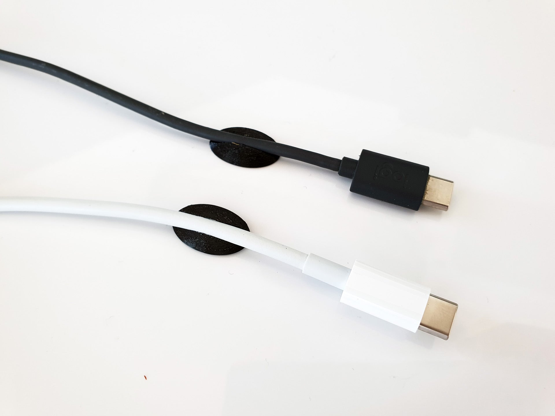 Holderen er tilgængelig i forskellige varianter til at passe til 3 mm kabel, to 3 mm kabler og 3.6 mm kabel (opladningskabel der følger med Apple Macbook Pro 2020).