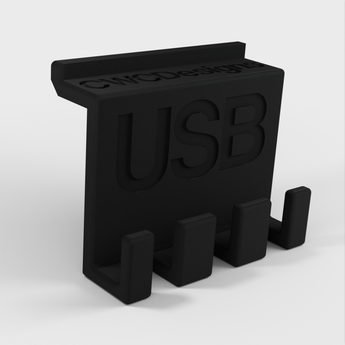 Dette er en USB-holder til rengøring og organisering af løse kabler på din arbejdsplads. Den er designet til at passe perfekt under et Lack bord fra Ikea, med en afstand på 3,5 mm mellem plexiglas på Lack og bordet. Denne kompakte løsning skaber et pænere og mere organiseret arbejdsområde.