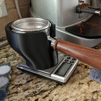 Lelit Bianca portafilter standen er designet til at understøtte en portafilter sikkert, mens du brygger din perfekte kaffe. Med en kompakt base passer denne stand let på en lille vægt, hvilket gør det muligt at wiege dine kaffebønner nøjagtigt direkte i portafilteret. Denbalancerede design sikrer, at portafilteret kan hvile stabilt uden at skulle holde i håndtaget, hvilket giver dig mulighed for at koncentrere dig om bryggeprocessen. Dette tilbehør er ideelt for kaffeentusiaster, der ønsker at forbedre deres kafferutiner med præcise målinger og en bekvem opbevaringsløsning.