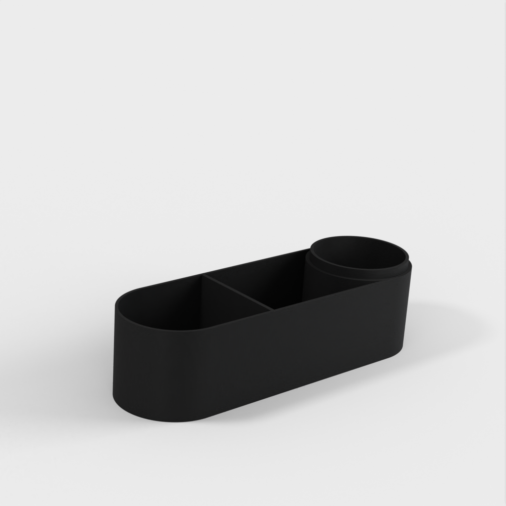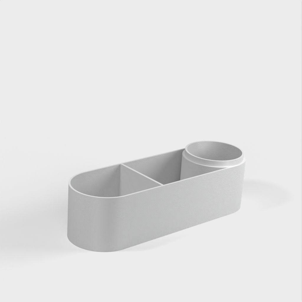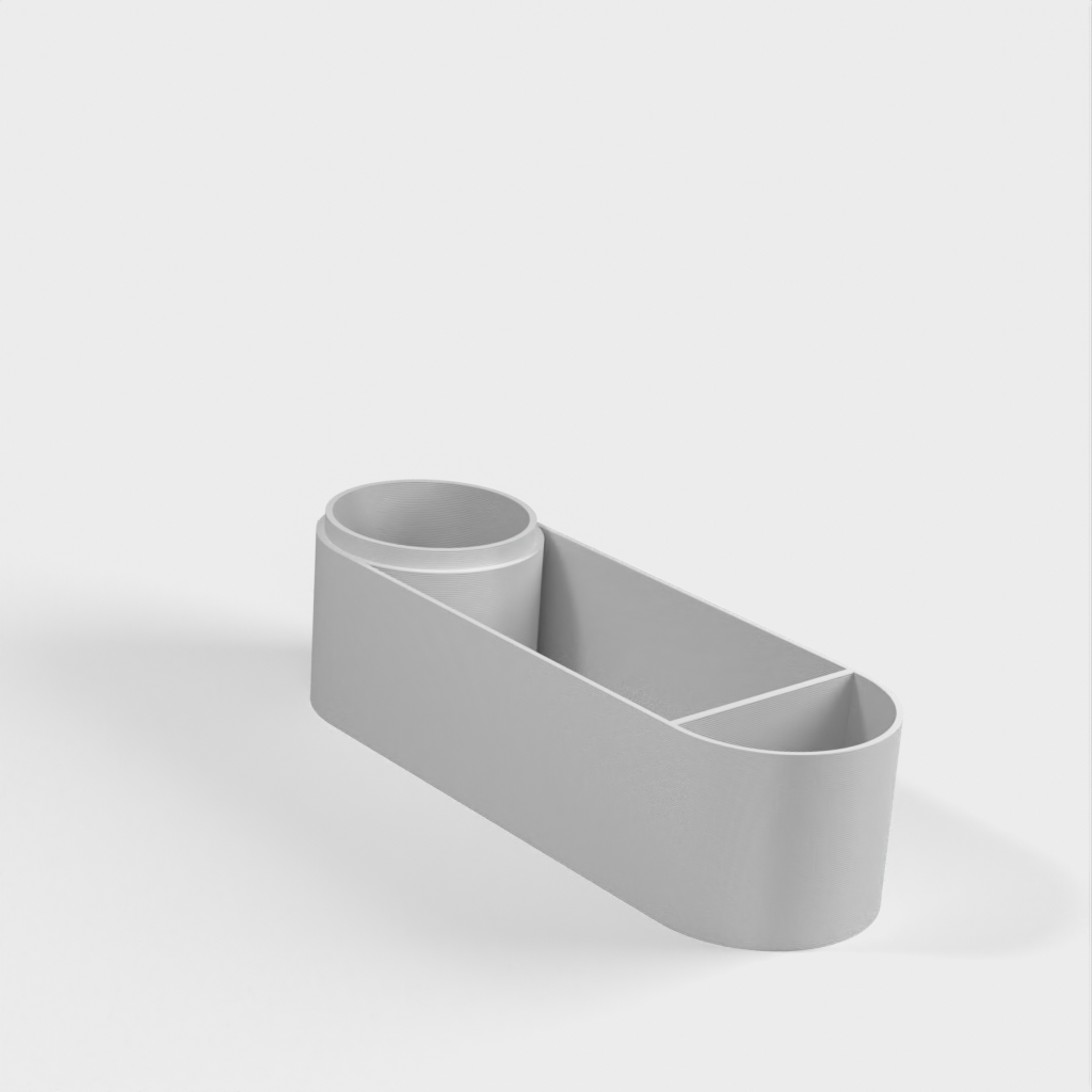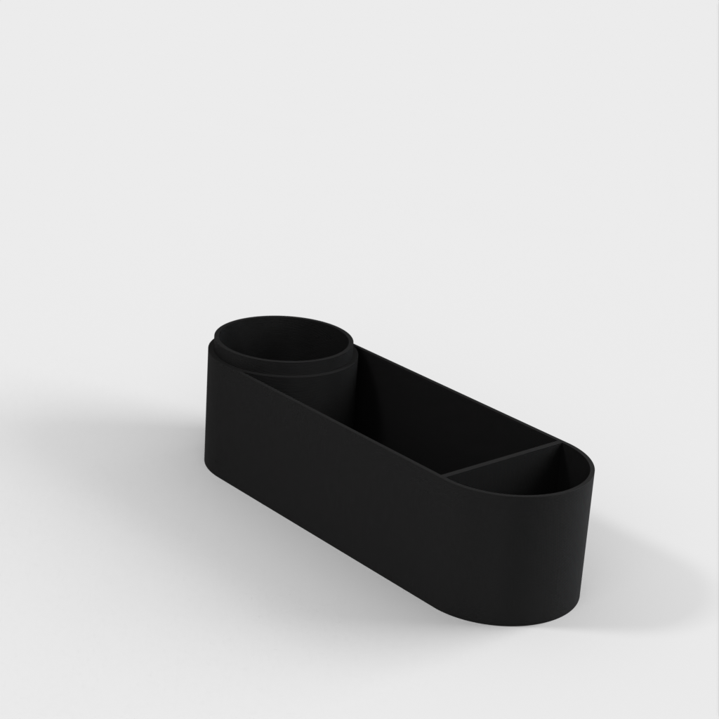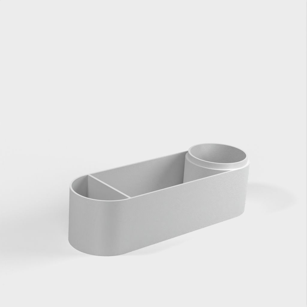 Denne modulære skrivebordsorganisator kræver ingen støtte og har skuffer, der let kan tilpasses for at gøre dem højere eller lavere, flytte, tilføje eller fjerne opdelinger. Der er to muligheder for top og bund dele, en for en kolonne og en anden for to kolonner for bedre stabilitet.