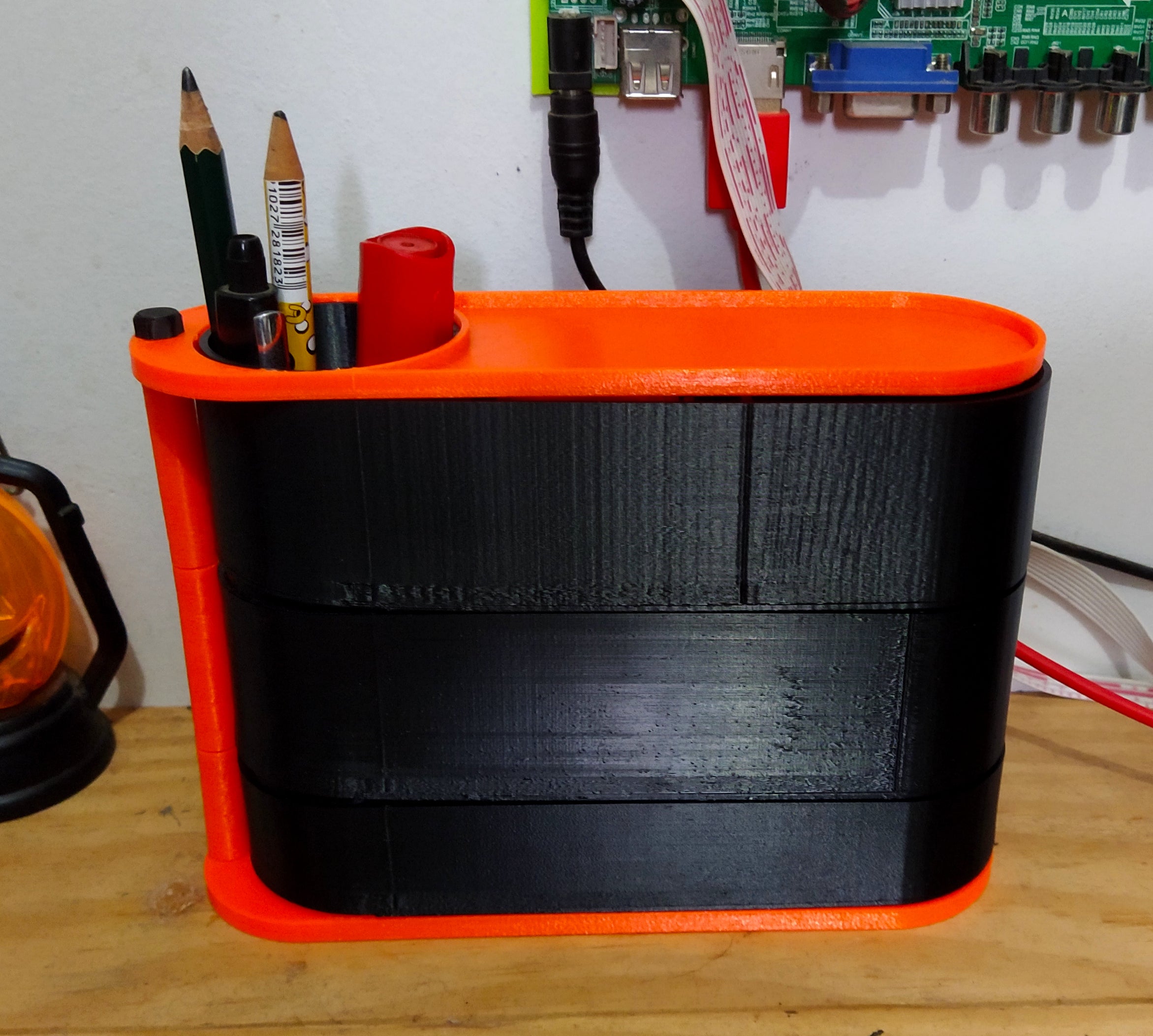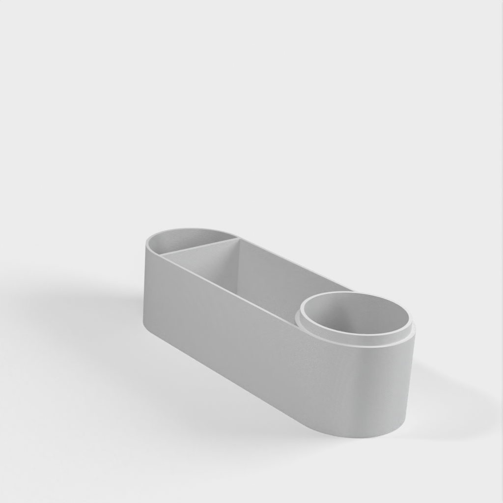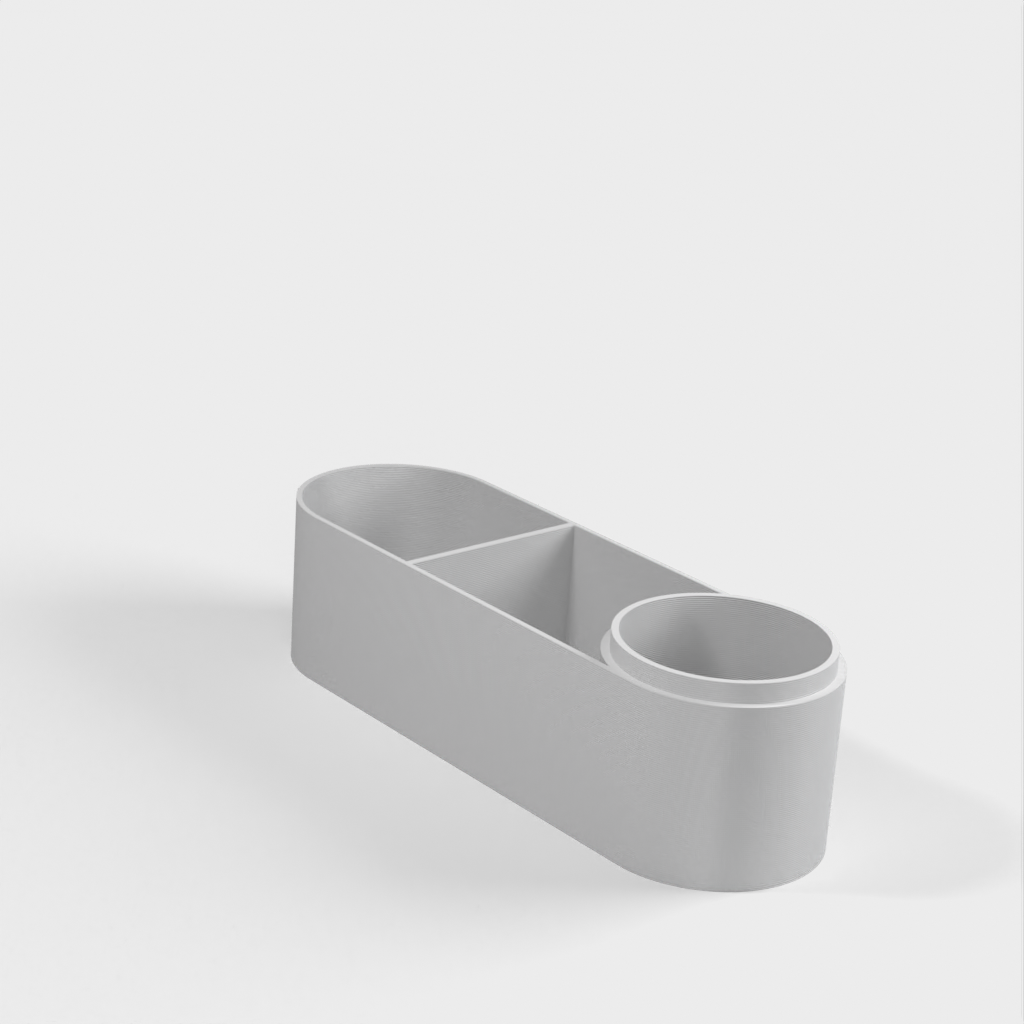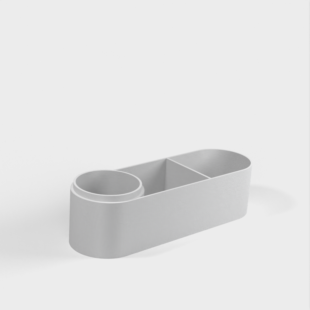 Denne modulære skrivebordsorganisator kræver ingen støtte og har skuffer, der let kan tilpasses for at gøre dem højere eller lavere, flytte, tilføje eller fjerne opdelinger. Der er to muligheder for top og bund dele, en for en kolonne og en anden for to kolonner for bedre stabilitet.