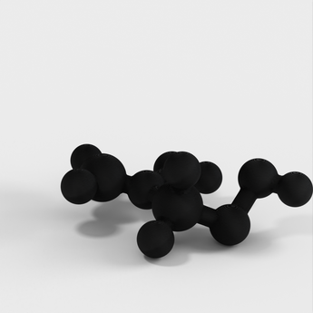 Dette er en molekylær model af Vinyl Acetate. Modellen bruges til at undervise børn i kemi, specifikt Polyvinyl Acetate (PVA), som er den hvide lim, der bruges til at lave slime i folkeskolen. Denne model giver et visuelt billede af, hvad der er i slim.