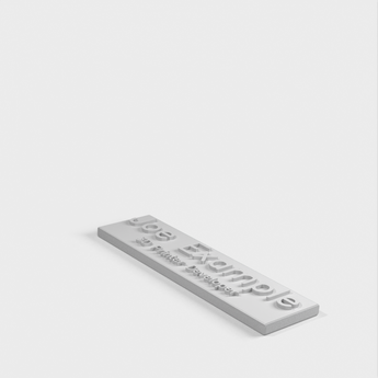 Navneplade-generator fra OpenJSCAD, der tillader dig at indtaste dit navn og din titel, hvorefter det vil skabe en tilpasset navneplade til print. Den færdige STL eller AMF fil kan let eksporteres til din printer.