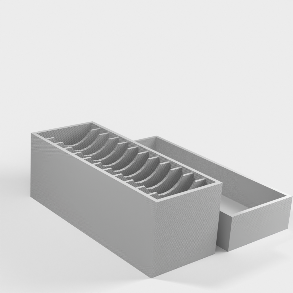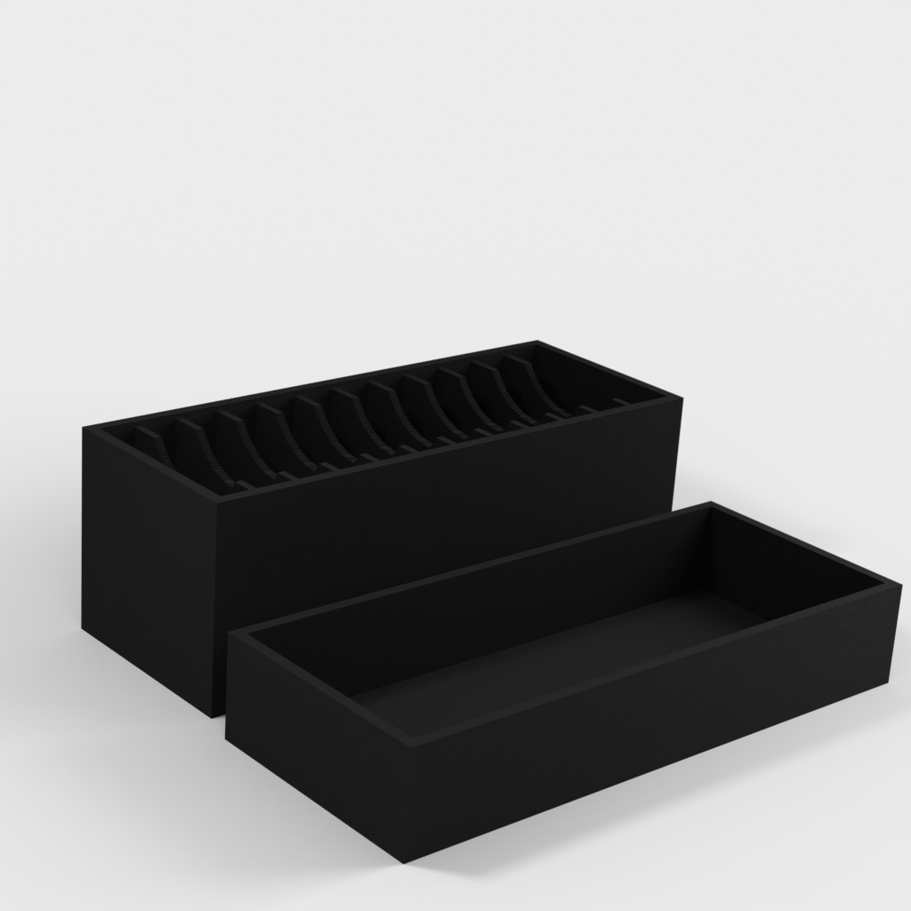 Boksen sikrer, at dine batterier opbevares sikkert, beskyttet mod skader og uventet afladning. Dens kompakte udformning gør den ideel til at placere i en skuffe, et værktøjsskab eller endda medbringe i en taske, så du altid har et friskt batteri ved hånden, når du har brug for det.