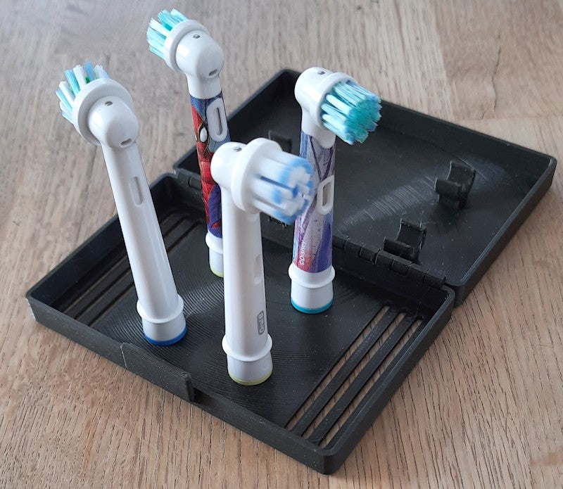 Dette praktiske rejseetui er designet til sikker opbevaring af dine Oral-B elektriske tandbørstehoveder, uanset om du er på farten eller blot ønsker at holde orden derhjemme. Etuiet fås i versioner, der rummer enten 2, 4 eller 6 tandbørstehoveder.
