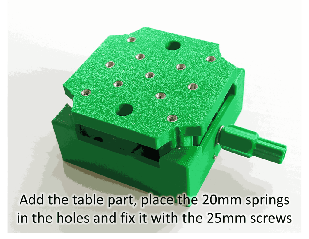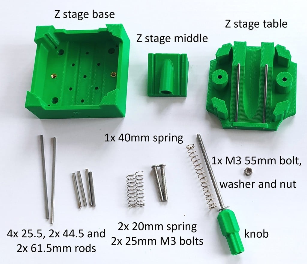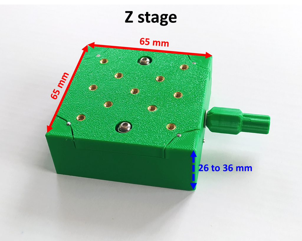 Den ortogonale trykte lineære stage er designet til at levere høj præcision i positioneringen, med en nøjagtighed på omkring 10 mikrometer. Dette produkt er ideelt til forskningsprojekter eller anvendelser, hvor præcise bevægelser er afgørende. Med sine 3D-trykte dele og få mekaniske komponenter, såsom 2 mm metalstænger, en 40 mm fjeder og en 55 mm M3 bolt med møtrik og washer, er denne lineære stage både enkel og effektiv.