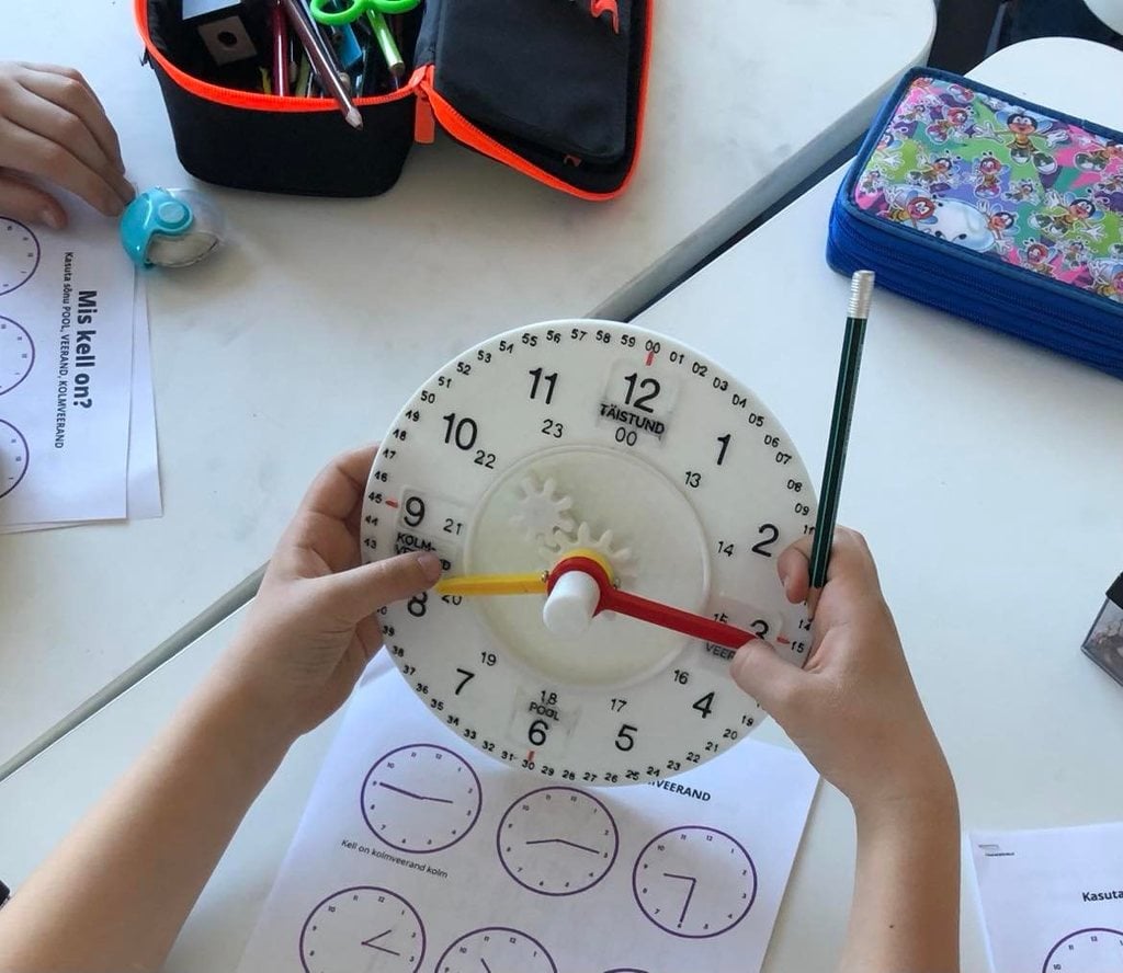 Det er ideelt til individuel brug, små grupper eller centre. De forskellige kvarterer er markeret på estisk, hvilket gør denne læringsklokke egnet for at give børn en introduktion til estisk sprog samtidig med at de lærer om tiden.