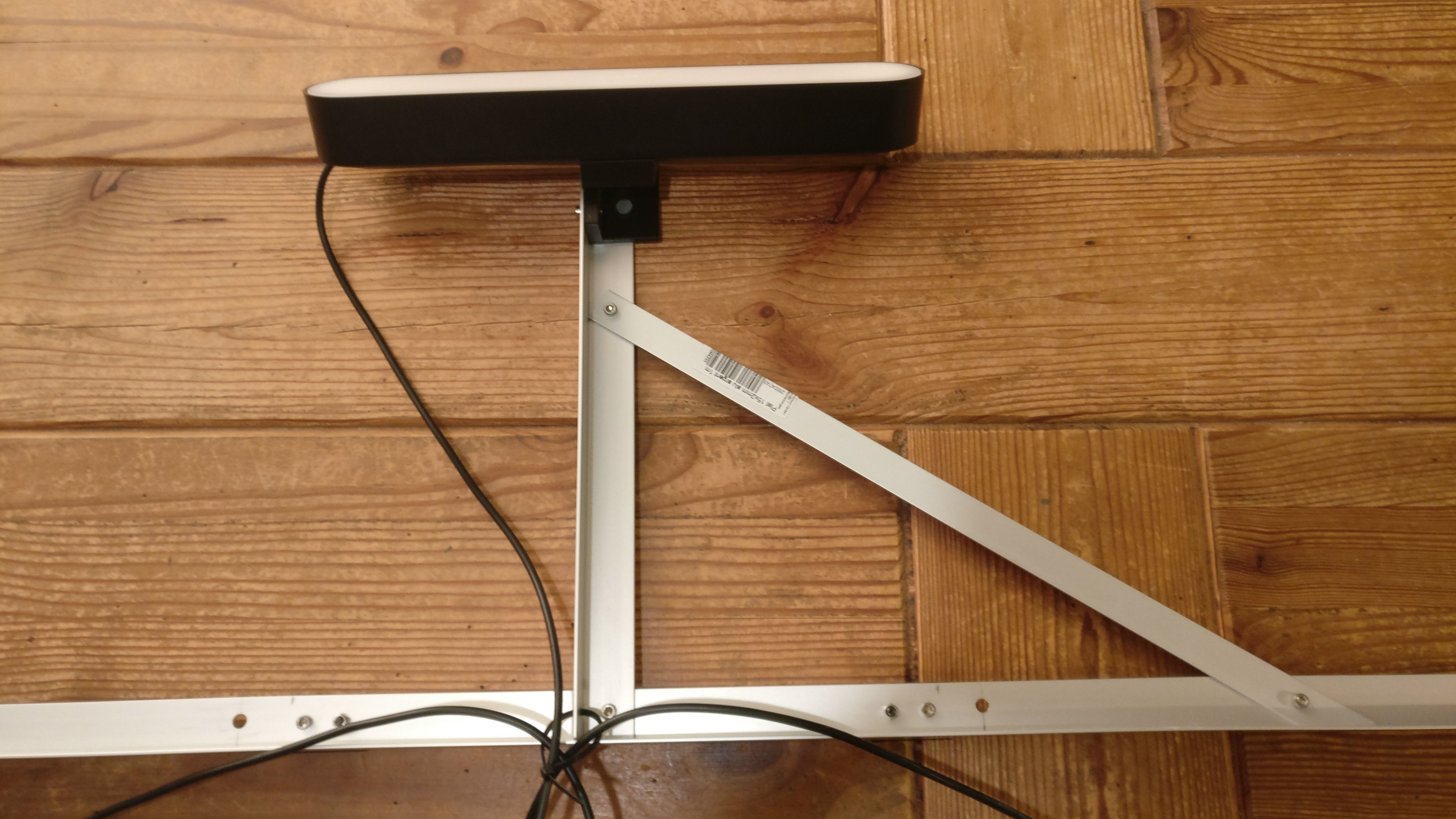 Monteringen sker ved at placere ophænget mellem TV-gulvstandens lodrette elementer, hvor det holdes sikkert på plads ved hjælp af medfølgende afstandsstykker. Dette sikrer en stabil og optimal placering af dine lysbarer, hvilket forvandler din stue med dynamisk belysning. En diskret og effektiv måde at integrere dine Philips Hue lysstrips som en del af dit hjemmeunderholdningssystem og generelt Philips tilbehør.