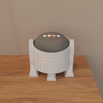 Sjov holder til en Google Nest Mini 2nd generation, der er udformet som R2D2 fra Star Wars.