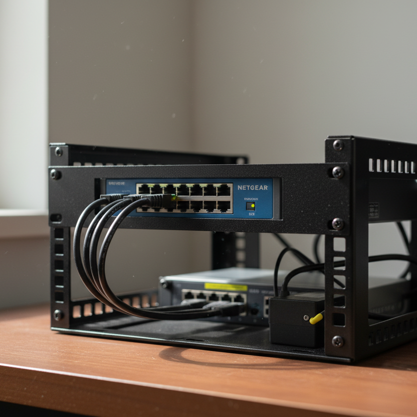 Rackmount til Netgear GS308 er en ideel løsning til montering af din Netgear switch i et 10 tommer netværksskabe. Dette rackmount er designet til at sikre nem installation og stabil placering af switchen, hvilket er essentielt for at opretholde et velorganiseret serverrum. Funktionsdygtigt og robust, gør det muligt for dig at optimere pladsbrugen i dit serverrack og samtidig beskytte dit udstyr mod skader. Med fokus på anvendelighed og effektivitet er dette rackmount et vigtigt valg for ethvert professionelt netværk.