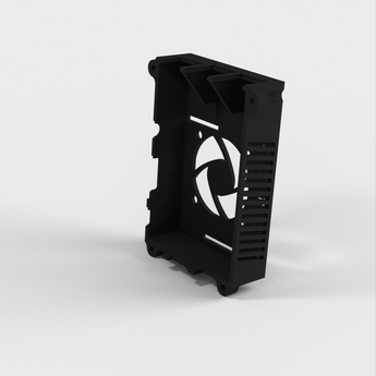 En modificeret overdel til et Raspberry Pi 3 kabinet, designet til at rumme en 40x40x10mm ventilator og sideudløb for at forbedre kabinetets køling. Denne designændring reducerer CPU-temperaturen betydeligt, hvilket øger Raspberry Pi's levetid, især i 24/7 miljøer som f.eks. NAS-setup. Bemærk venligst, denne version er ikke kompatibel med Raspberry Pi 4, da den har en anden portlayout. Ventilatorens og varmelegemets placering betyder også, at denne overdel stadig kan bruges med varmeplader.