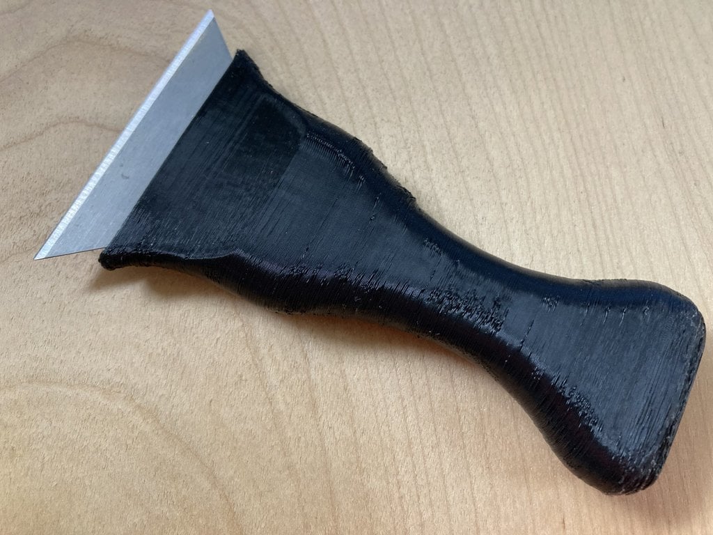 Et håndtag til barberblad, der er robust og effektivt til rengøring af gamle limrester fra din 3D-printers glasbed. Det hjælper også med at fjerne stædige print fra glasbeden. Du skal blot skubbe bladet ind i håndtaget, og det vil sidde fast. Både skarpe og stædige print kan nemt fjernes ved at trykke håndtaget ned mod glasbeden eller ved at banke blidt i den brede ende af håndtaget for at løsne printet fra glasbeden. Håndtaget har også en version med et hul, så du kan hænge det op.