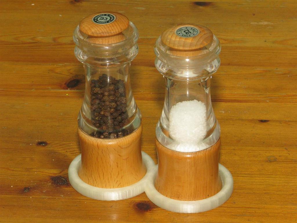 Dette er en dobbeltbrik til opbevaring af både salt- og peberkværn i skabet eller på bordet. Den er designet til at fange og holde på eventuelt overskydende salt eller peber, der kan falde fra kværnene, og på den måde sørge for mindre rod i dit køkken.