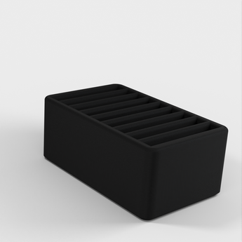 Dette er en SD-kort holder der er nem og hurtig at printe. Den har plads til 9 kort, og har målene 48.5mm (længde), 30mm (bredde) og 20mm (højde). Perfekt til en organiseret opbevaring af dine SD-kort.