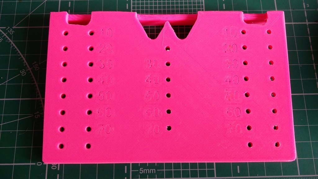 Dette er en skabelon til at mærke og installere håndtag på skuffe og skabslåger. Skabelonen er designet til at hjælpe med montering af: