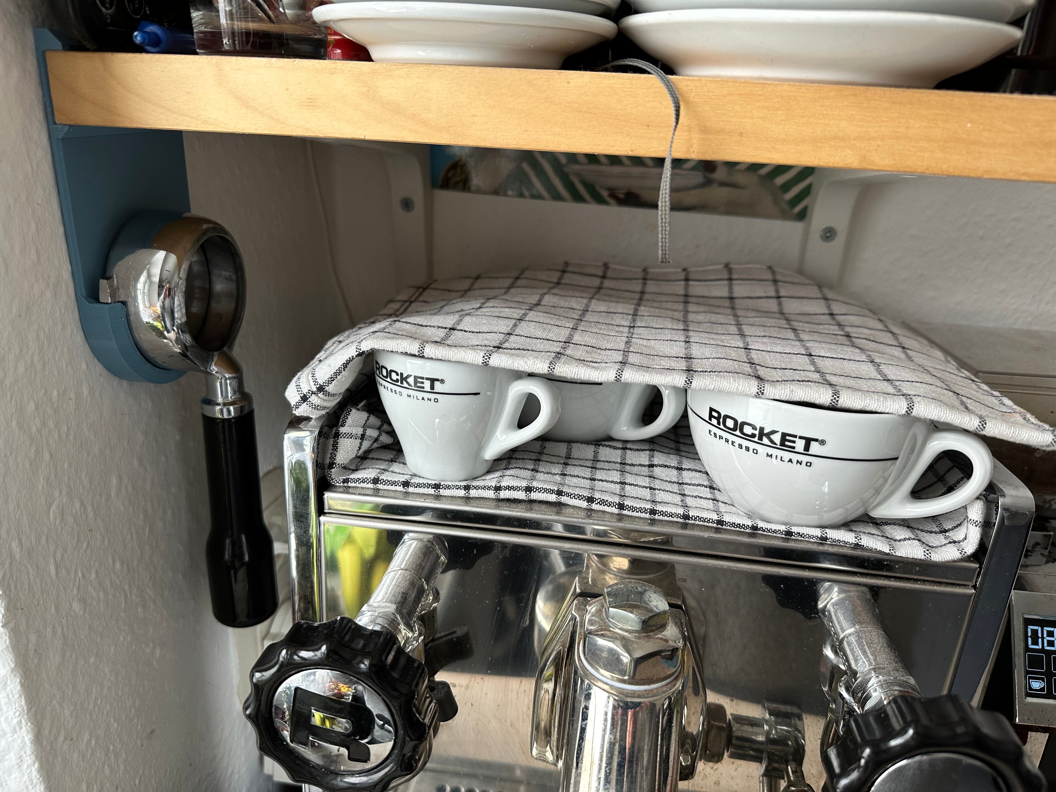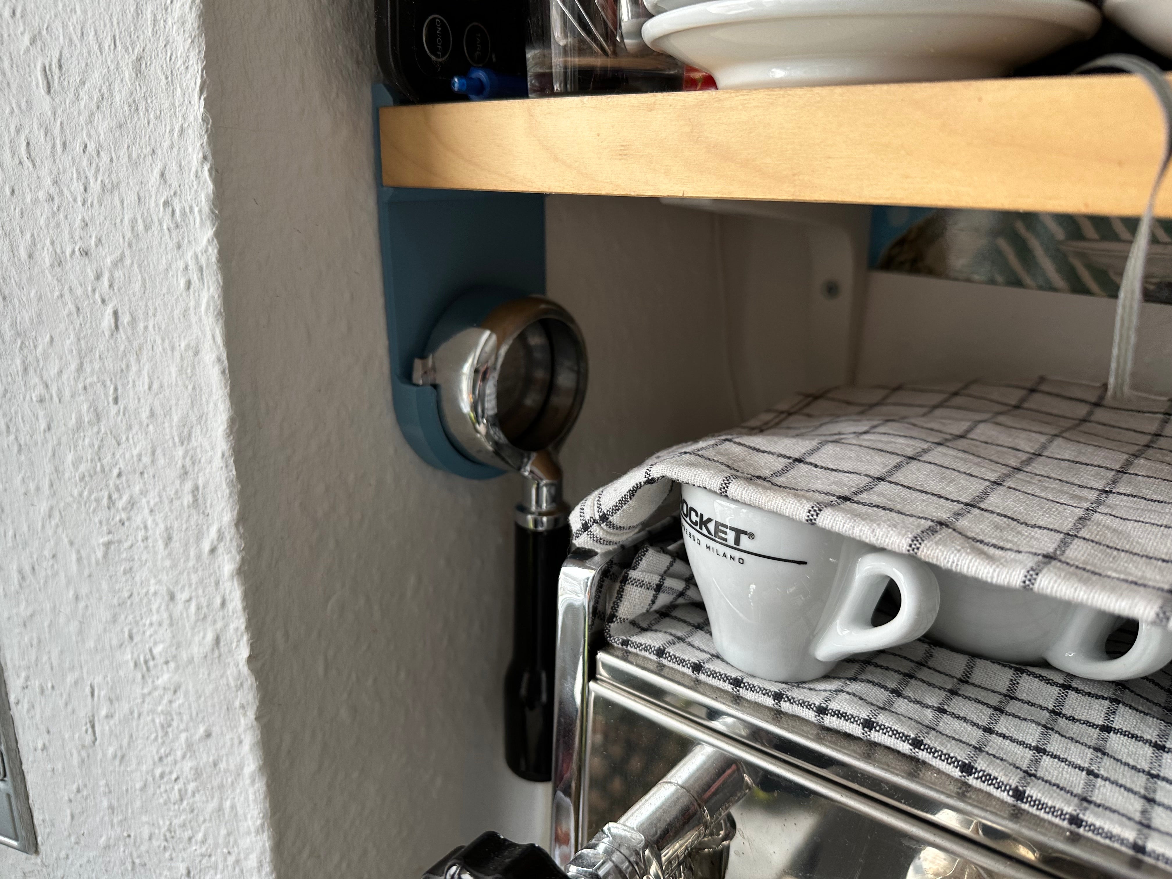 Denne skrueløse portafilterholder tilbyder en praktisk løsning til opbevaring af dine portafilter. Designet specifikt til Rocket Mozzafiato portafilter, giver denne holder dig mulighed for at hænge dine espresso accessories diskret under en hylde, hvilket frigør værdifuld bordplads i dit køkken. Som et ideelt Rocket Espresso tilbehør, muliggør det en organiseret opbevaring af dine Rocket Espresso portafilter. Det enkle og funktionelle design gør det muligt at placere flere holdere ved siden af hinanden for et strømlinet kaffe setup.