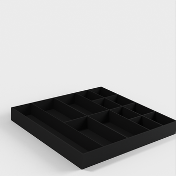 Dette er en skuffeorganisator, der er designet specifikt til skuffer. Den hjælper med at bringe orden og struktur til dine skuffer ved at separere og organisere indholdet på en klar og effektiv måde. Hold din skuffe ryddelig og godt organiseret med denne praktiske skuffeorganisator.