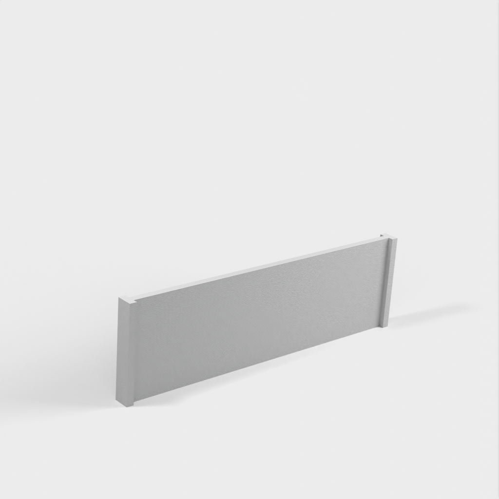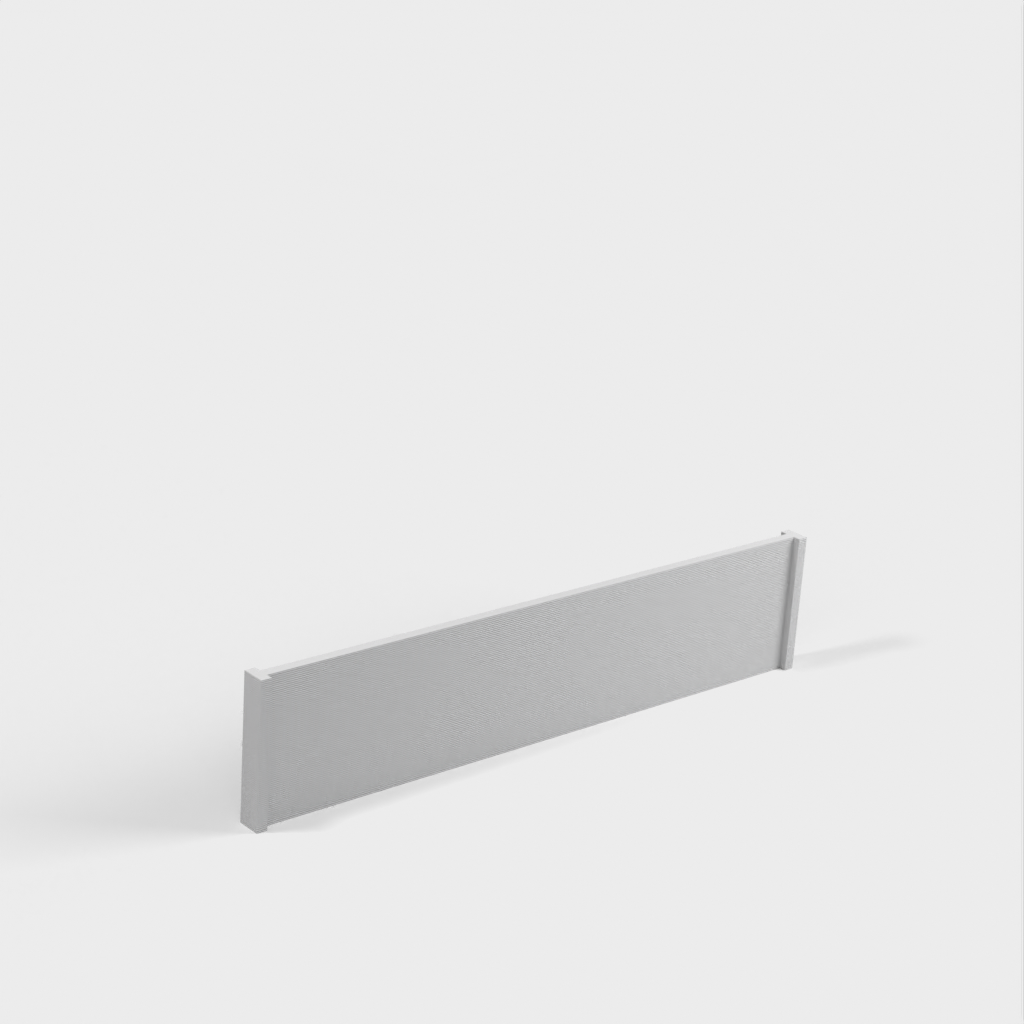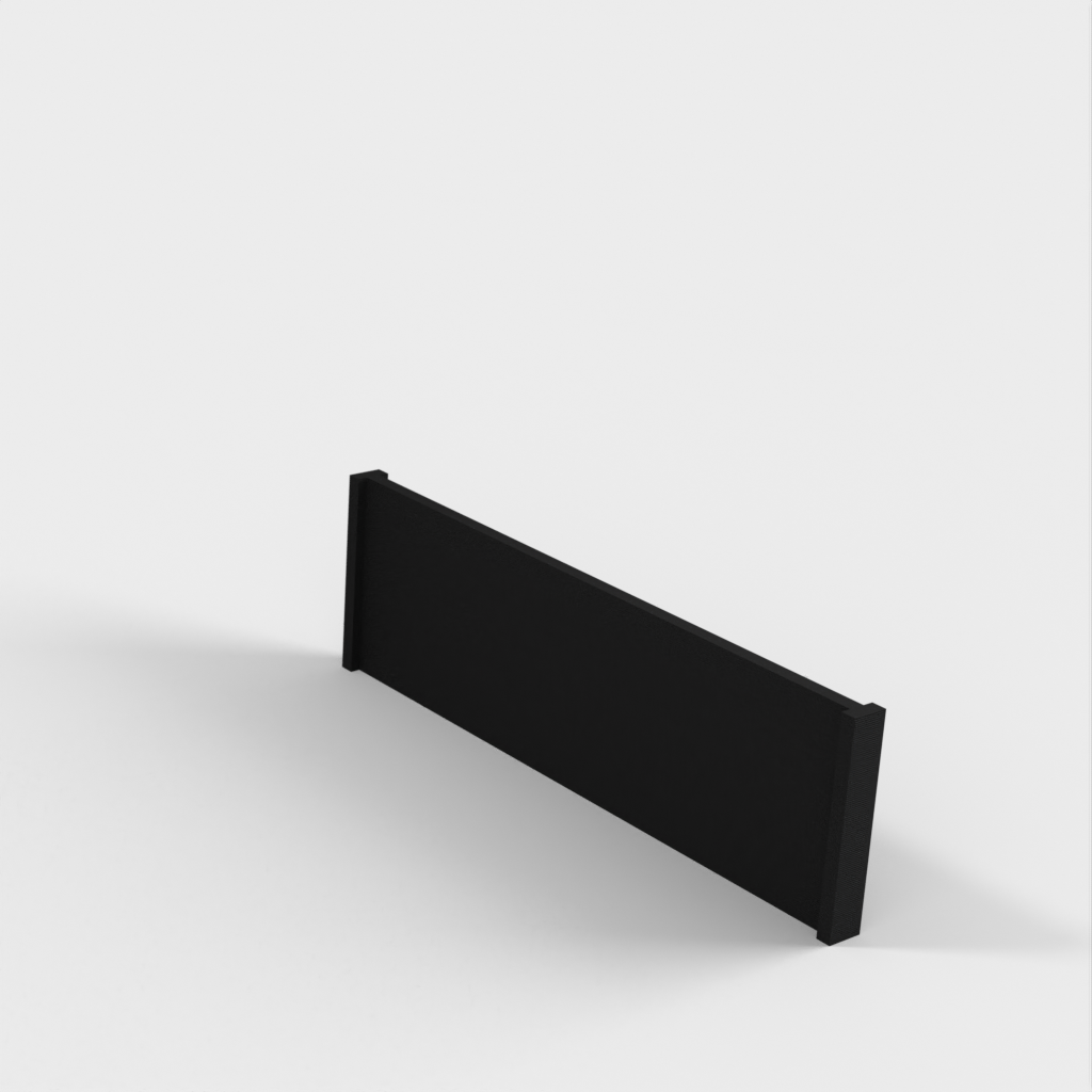 Enkel organiseringssystem til skuffer. Dette system bruger L-forbindelser i hjørne, T-forbindelser på udvendige sider og krydsforbindelser for indvendige knudepunkter. Udskriv de nødvendige skillevægge og forbinder dem ved at skære forbindelsesstykkerne på fra oven. Hvis du har brug for højere skillevæge kan du blot skalere både skillevægge og forbindelser i samme forhold i Z-retningen.