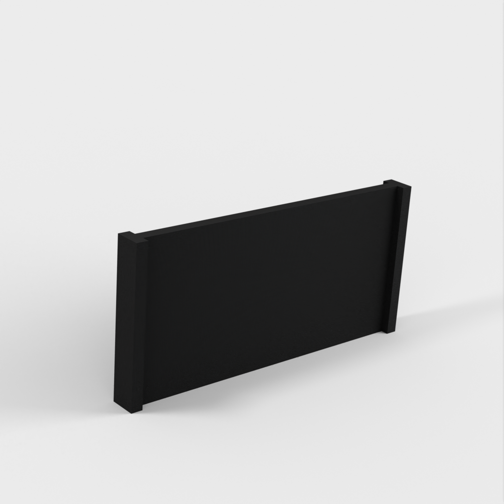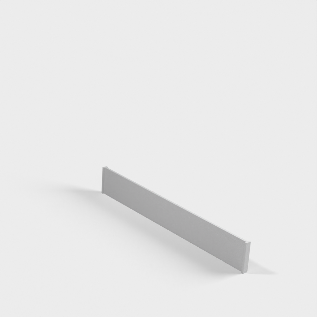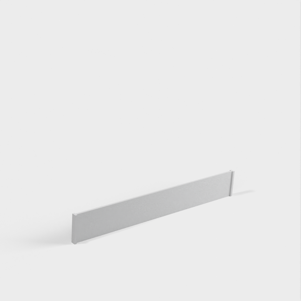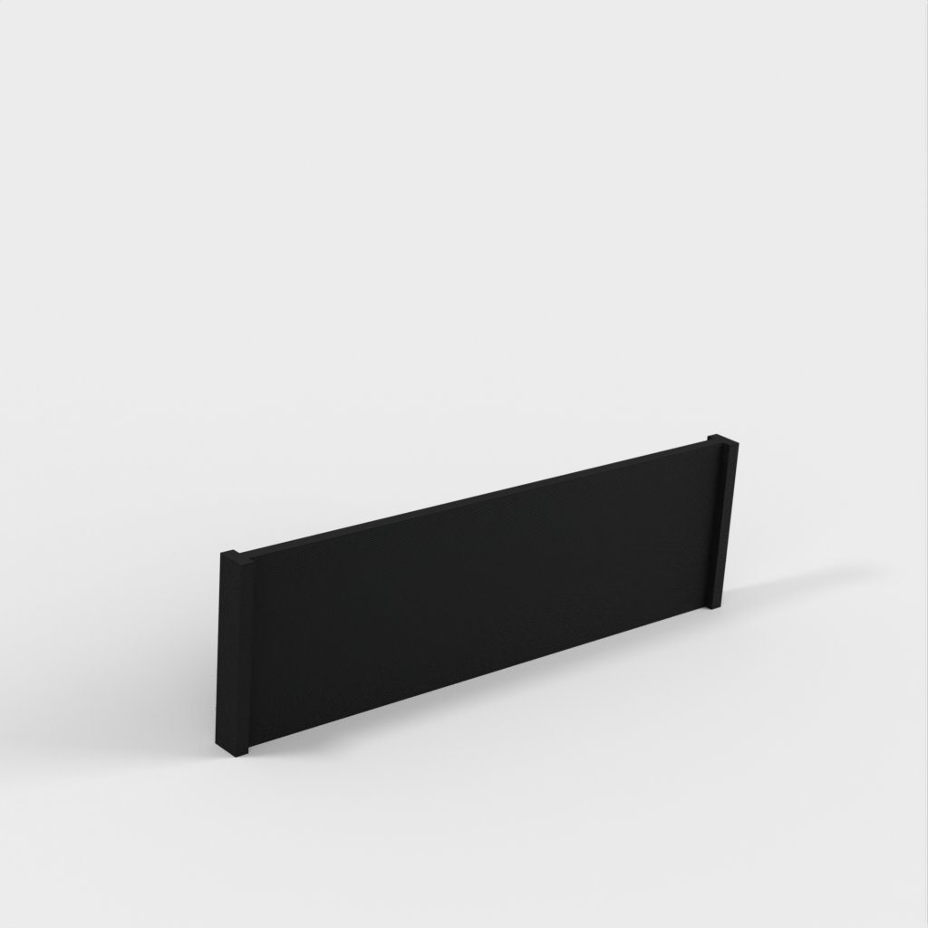Enkel organiseringssystem til skuffer. Dette system bruger L-forbindelser i hjørne, T-forbindelser på udvendige sider og krydsforbindelser for indvendige knudepunkter. Udskriv de nødvendige skillevægge og forbinder dem ved at skære forbindelsesstykkerne på fra oven. Hvis du har brug for højere skillevæge kan du blot skalere både skillevægge og forbindelser i samme forhold i Z-retningen.