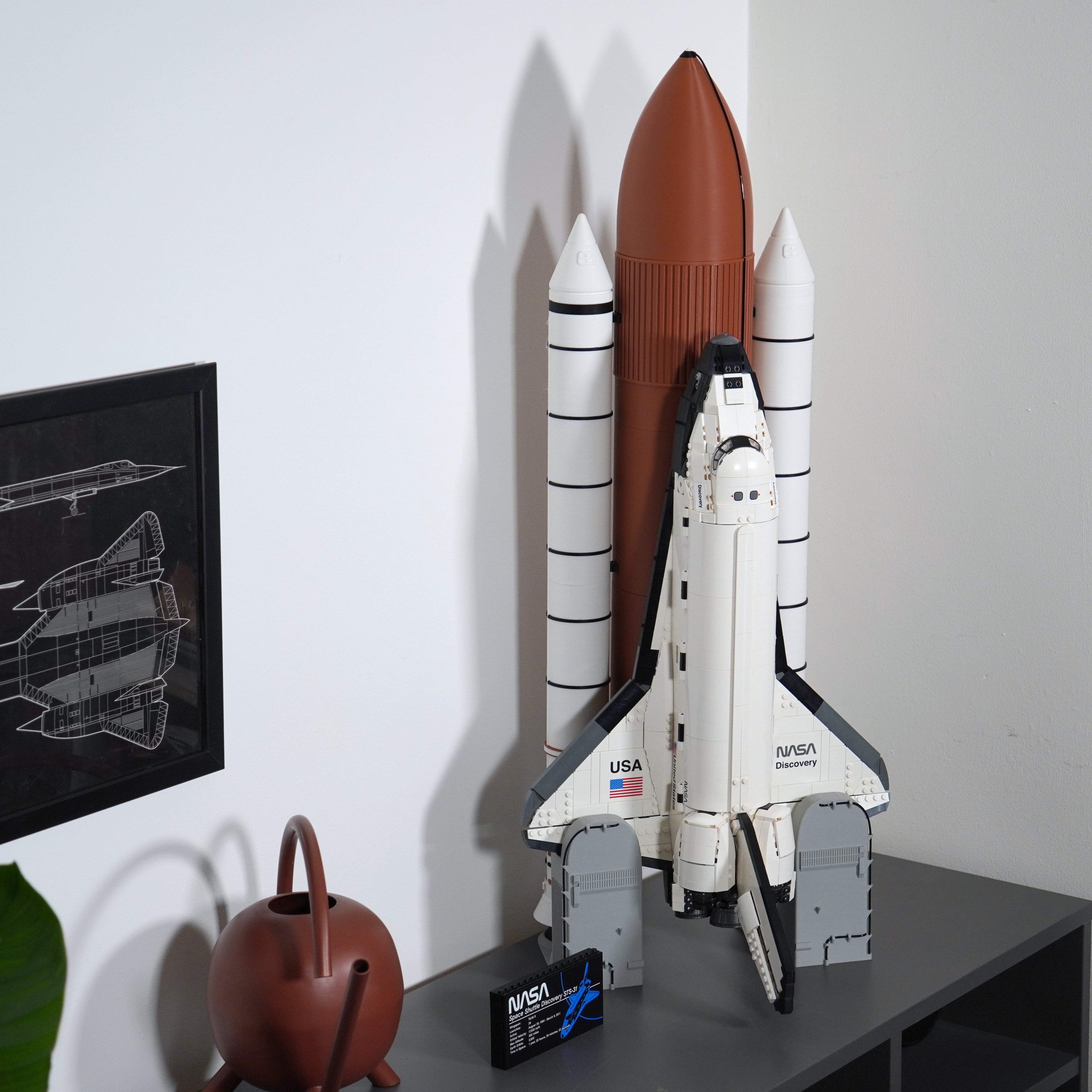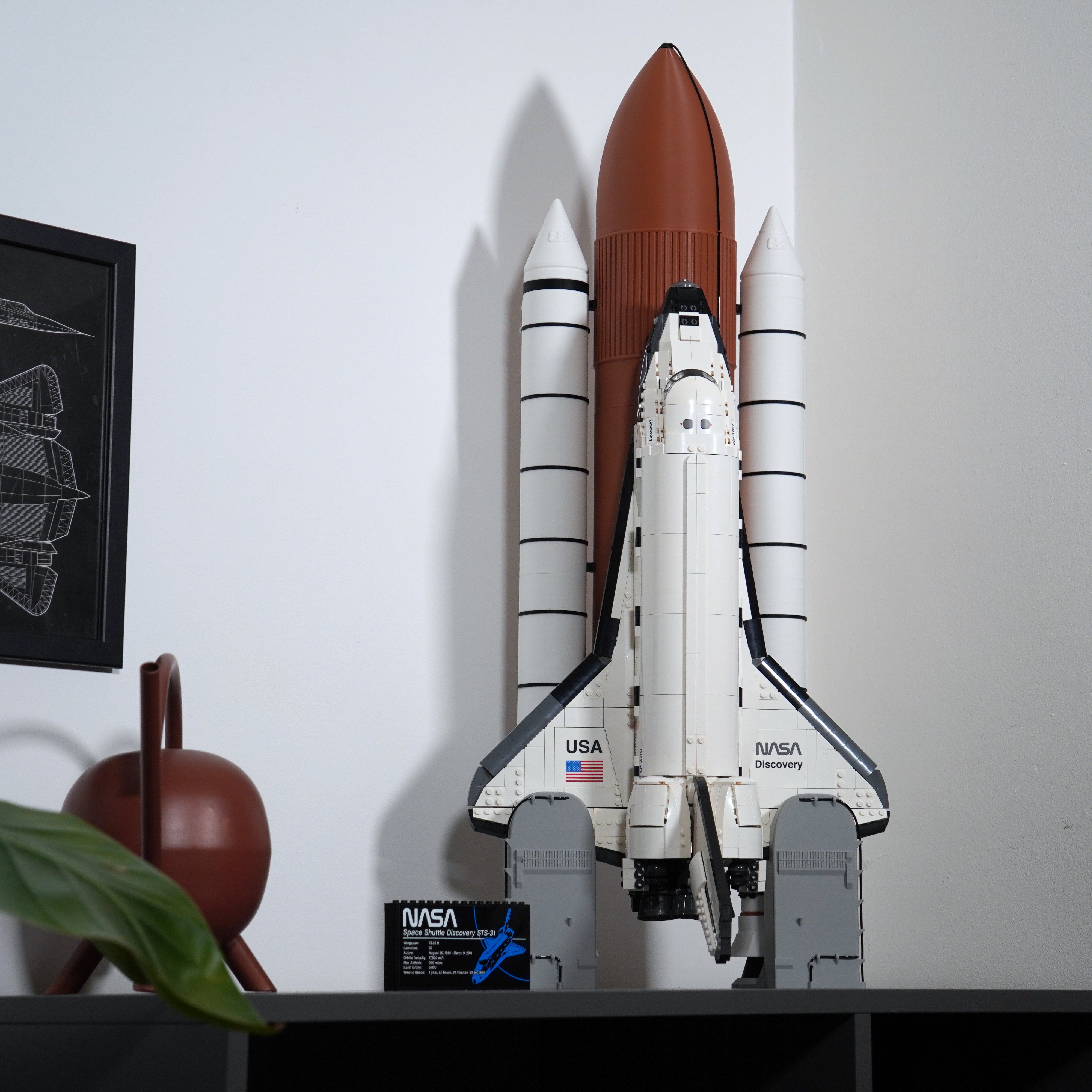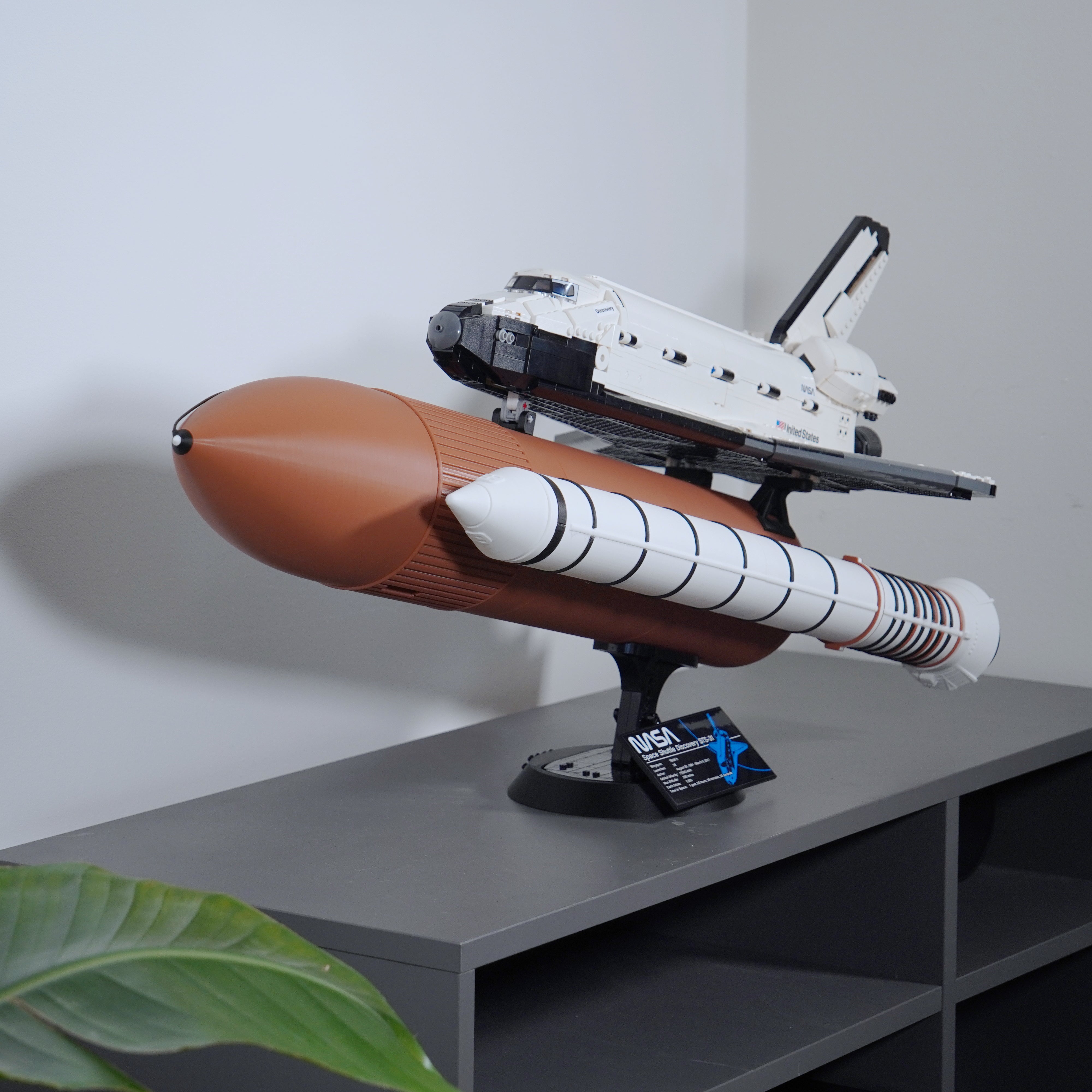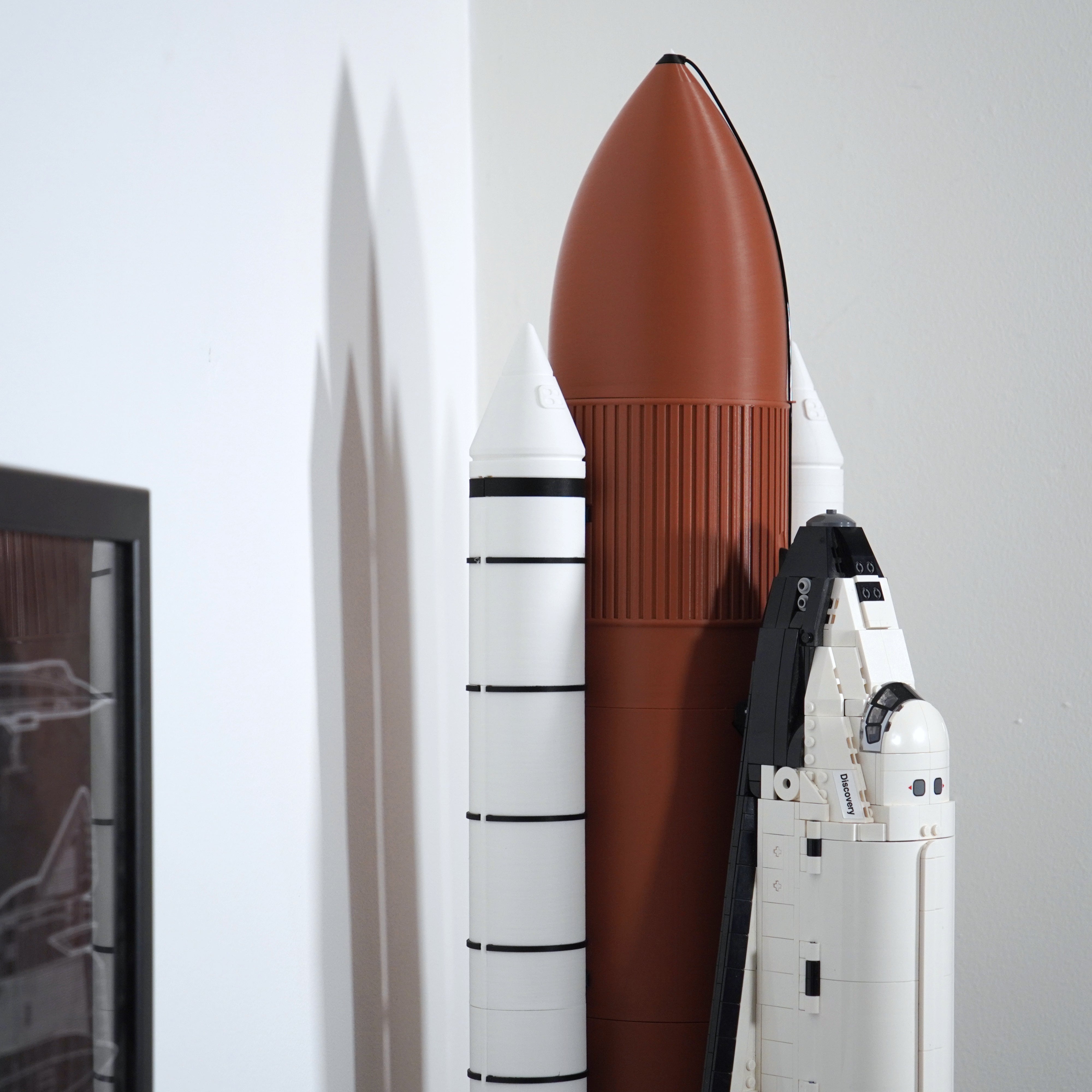 - Fuldend Lego 10283-sættet med solide raketboostere og en ekstern tank.