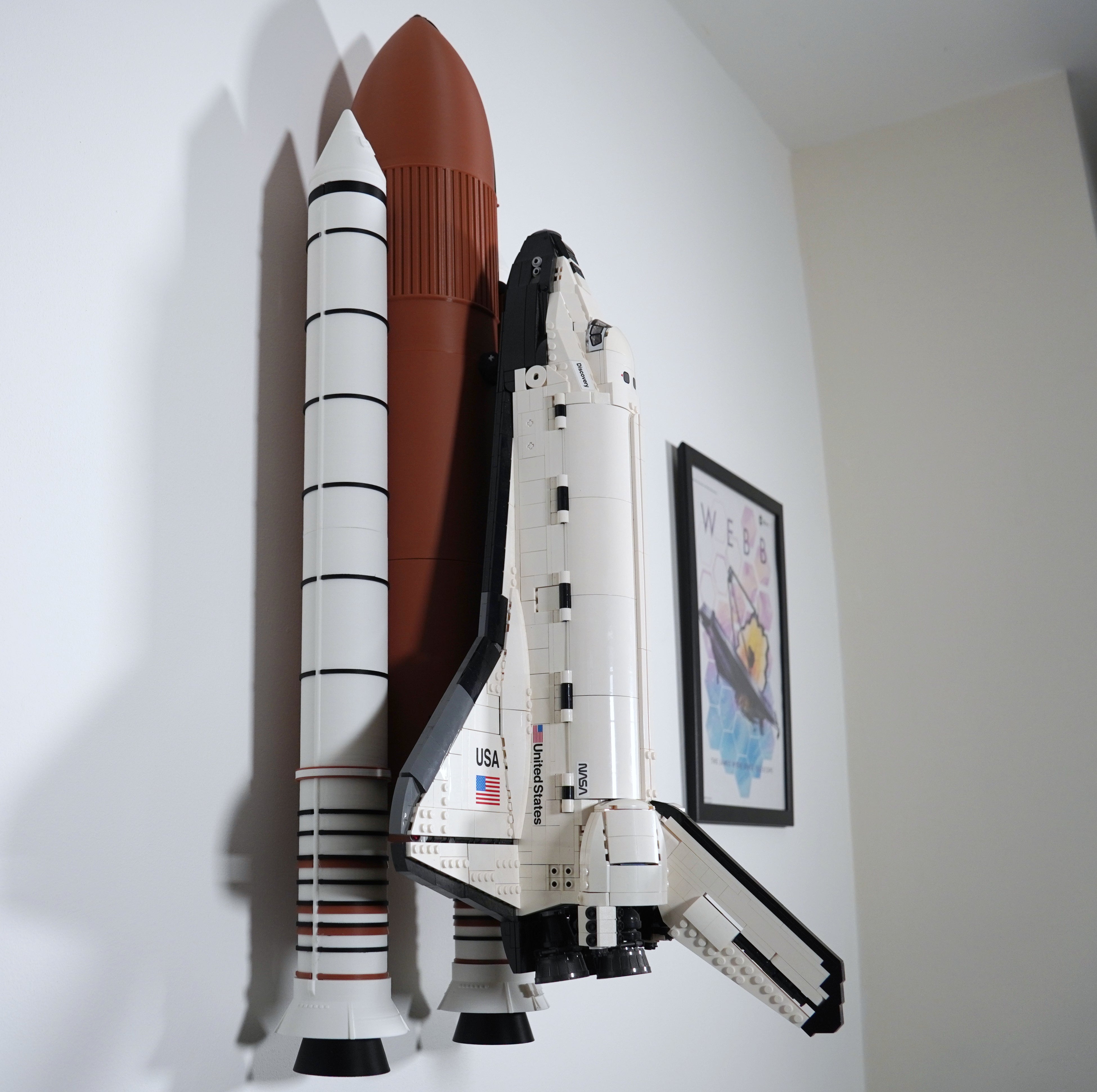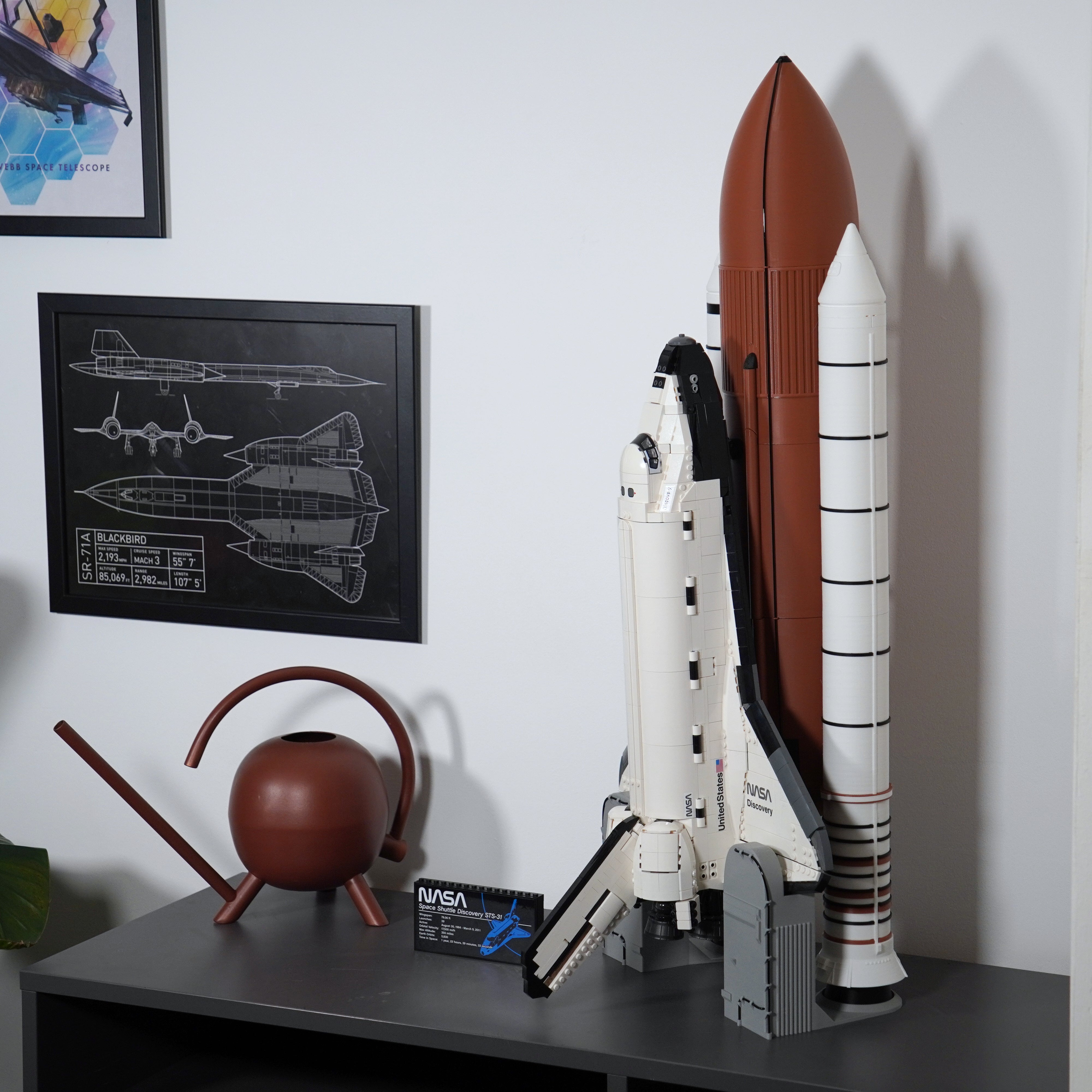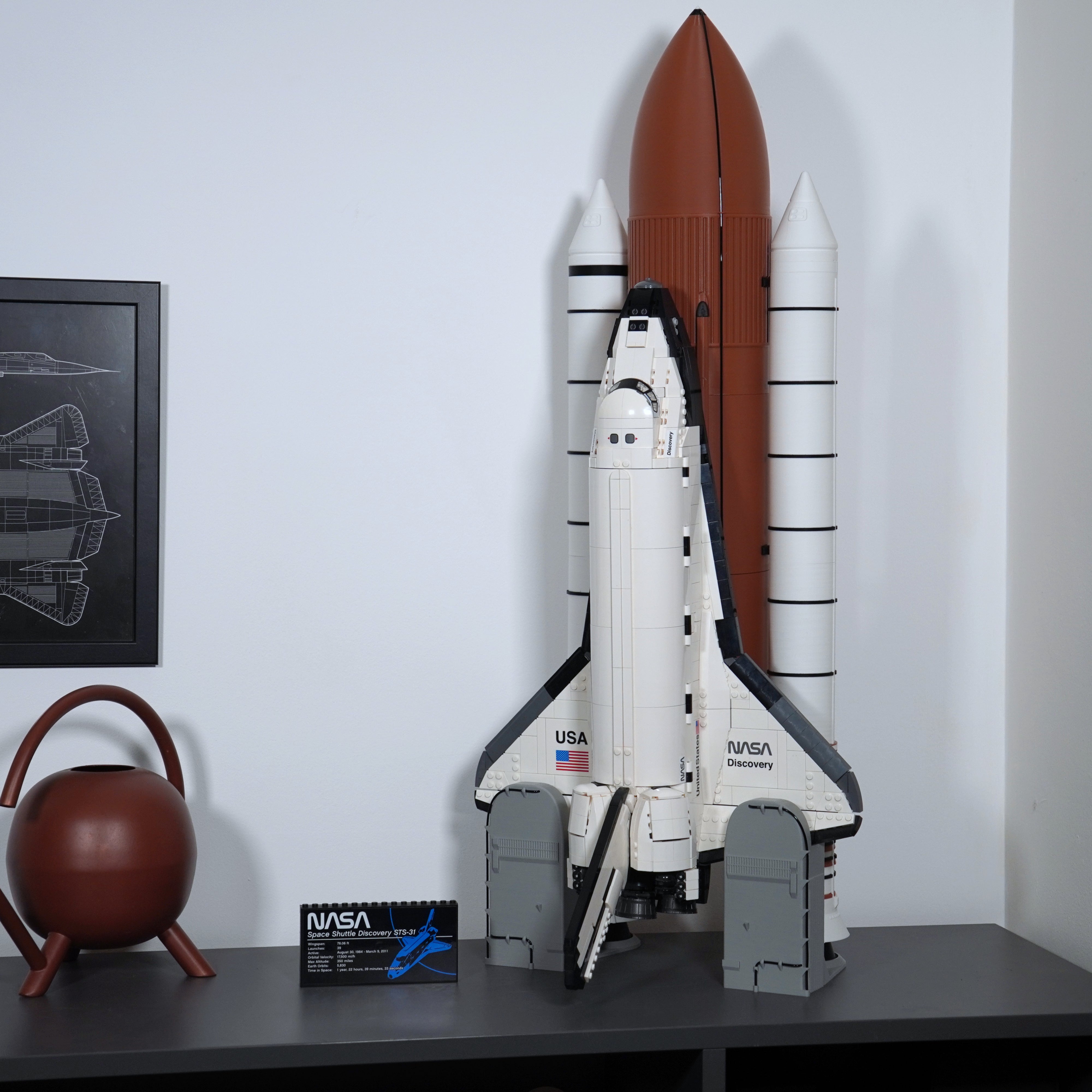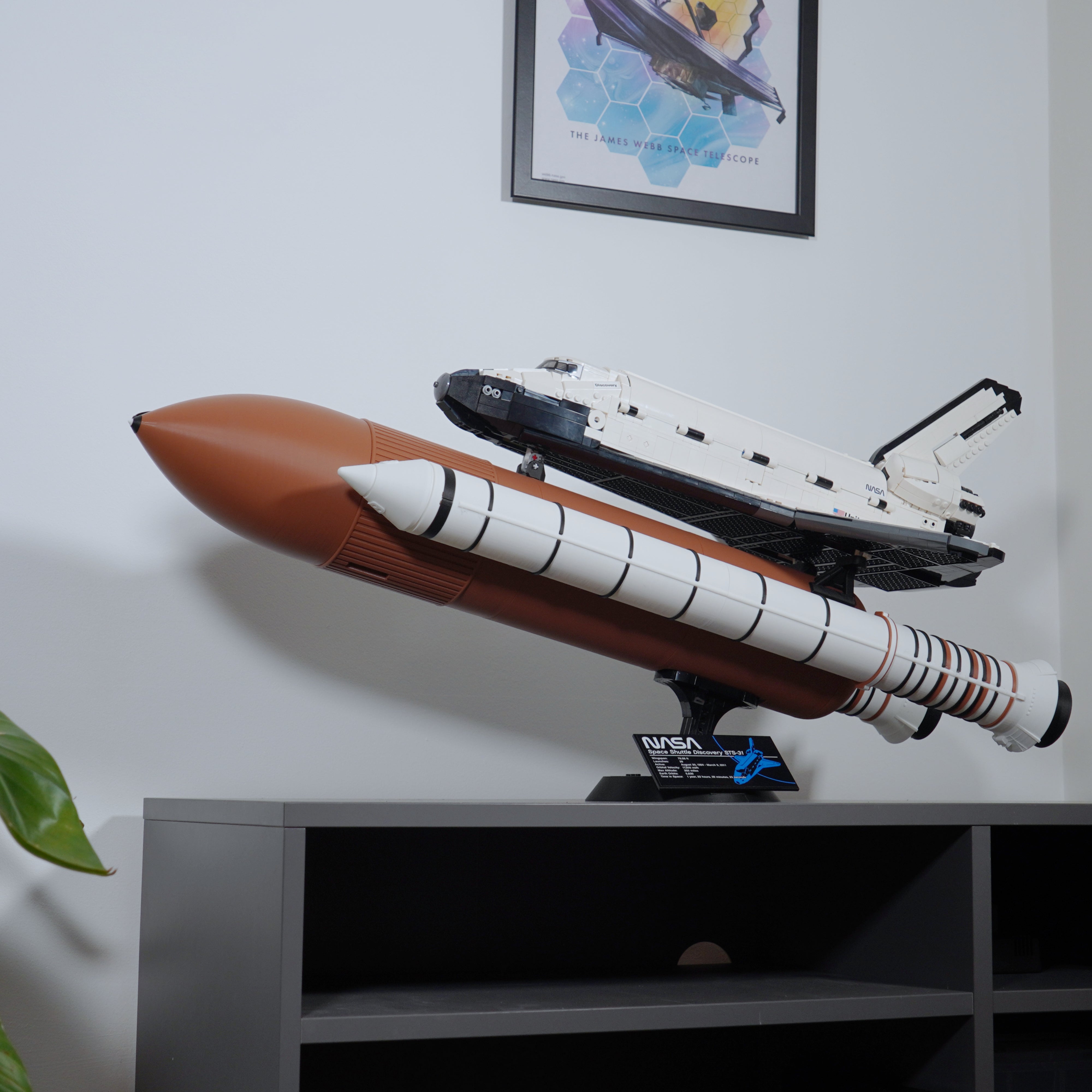 - Fuldend Lego 10283-sættet med solide raketboostere og en ekstern tank.
