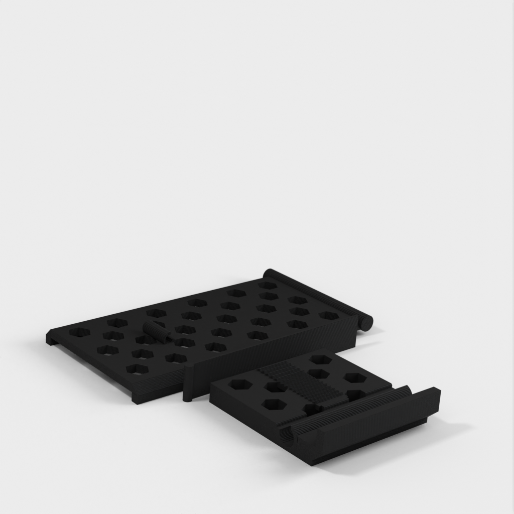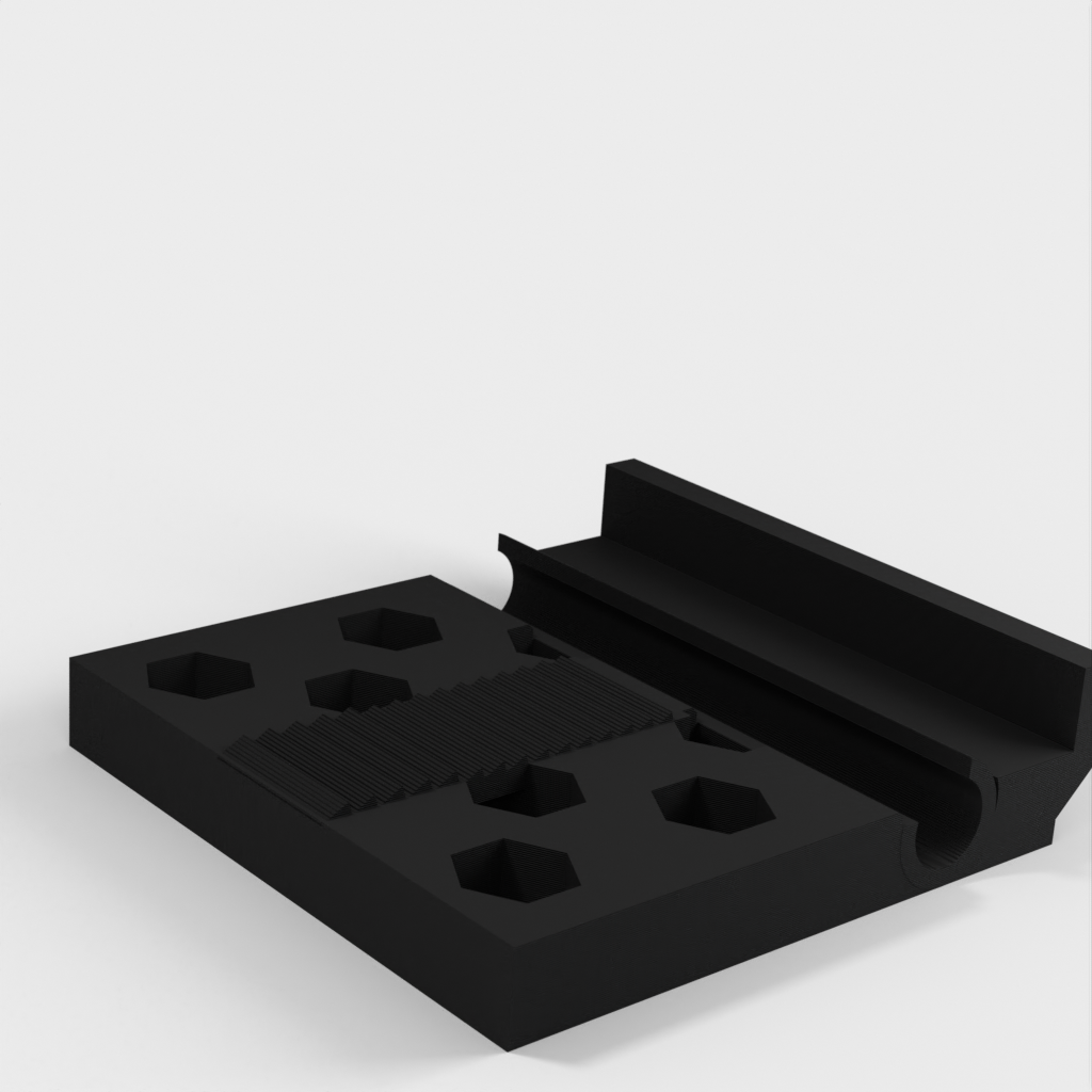 Tilpasselig og transportabel telefonholder. Denne holder er designet til at passe til enhver smartphone, og er nem at transportere, så du nemt kan tage den med dig overalt. Det er den perfekte løsning for at holde din telefon sikker og komfortabel, uanset hvor du er.