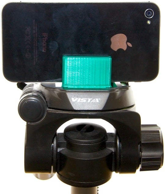 Brugerdefineret telefonstativ-montering skræddersyet til din telefon og stativ. Denne mount sidder perfekt på et hurtig-release stativ og har plads til at glide din iPhone (eller anden telefon med flad for- og bagside) mellem to stykker plastik for sikker montering.