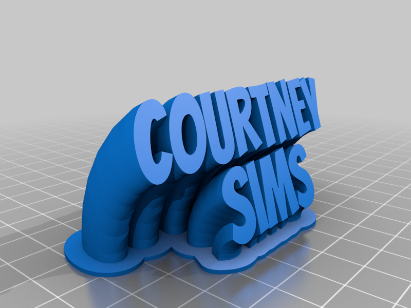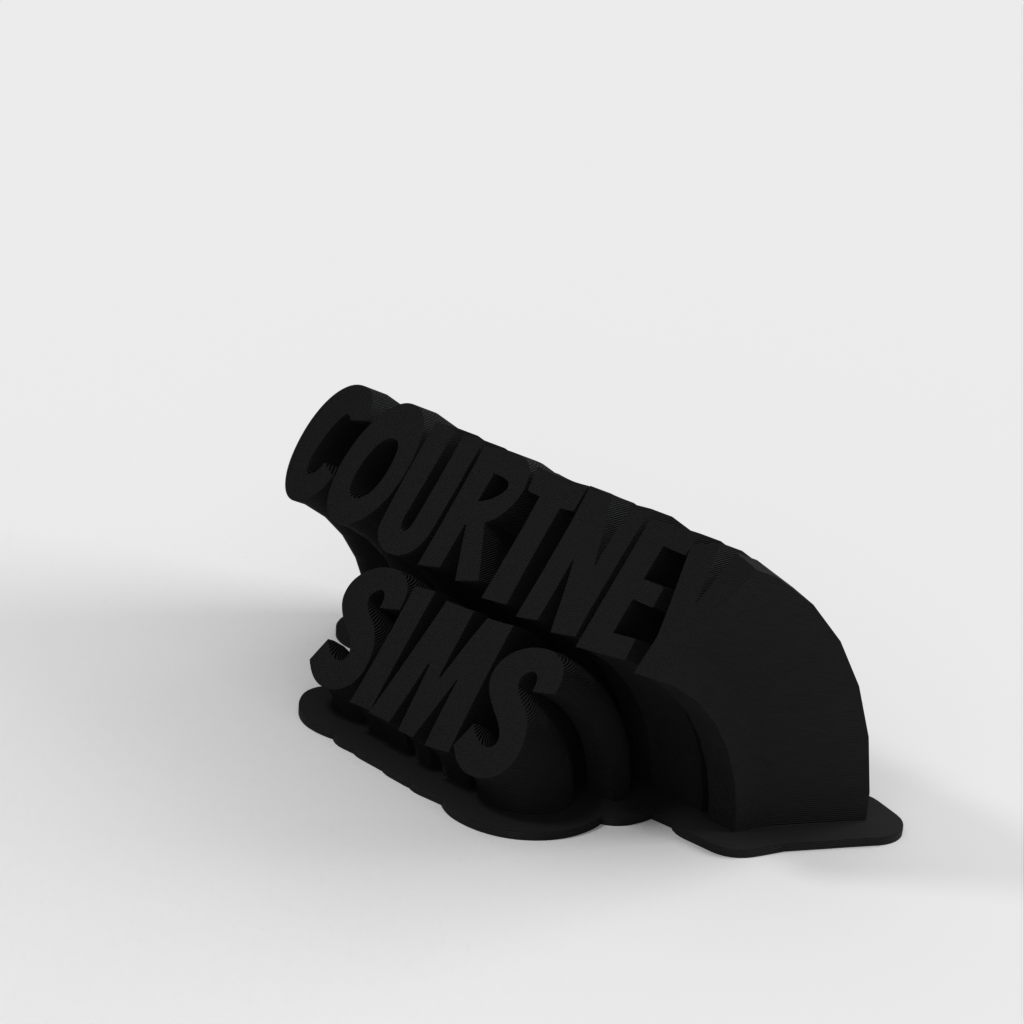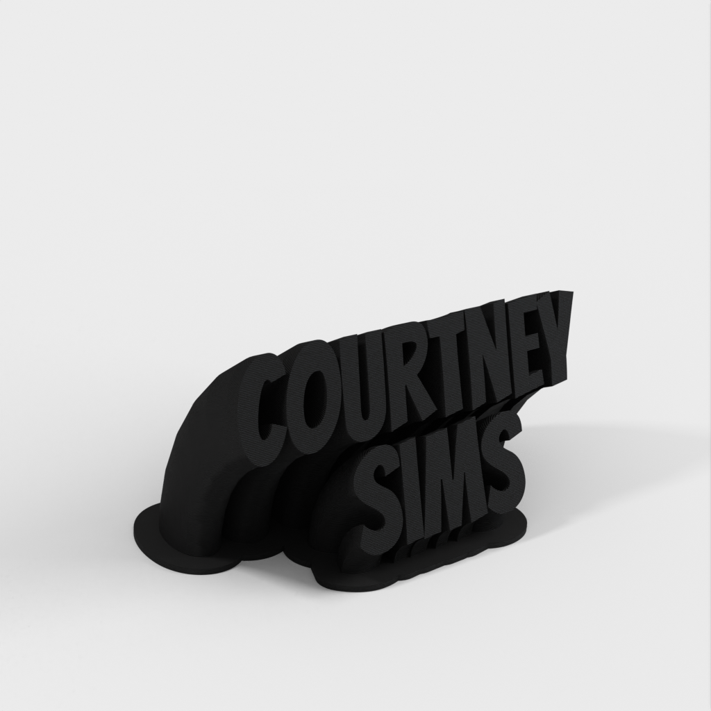 Denne specialfremstillede navneplade er designet til at vise navnet 'Courtney Sims'. Den har en unik rund base og teksturerede bogstaver, der bringer personlighed og et special-indslag til enhver skrivebord, reol eller arbejdsområde. Navnepladen er skabt med præcision og nøjagtighed, som afspejler den høje kvalitet og omhu i designprocessen.