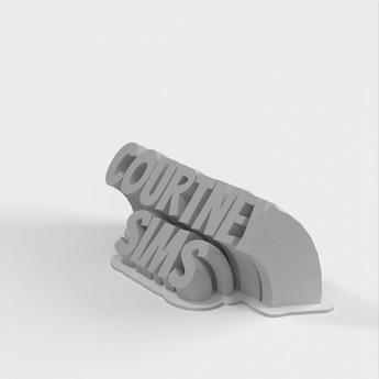 Denne specialfremstillede navneplade er designet til at vise navnet 'Courtney Sims'. Den har en unik rund base og teksturerede bogstaver, der bringer personlighed og et special-indslag til enhver skrivebord, reol eller arbejdsområde. Navnepladen er skabt med præcision og nøjagtighed, som afspejler den høje kvalitet og omhu i designprocessen.