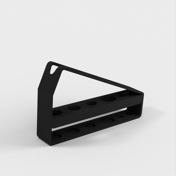 En simpel tandbørsteholder til 3 almindelige Curaprox tandbørster, 2 små børster og 1 børnebørste. Den er limet i bunden for større stabilitet. Dette holder dit badeværelse organiseret og dine tandbørster samlet et sted.