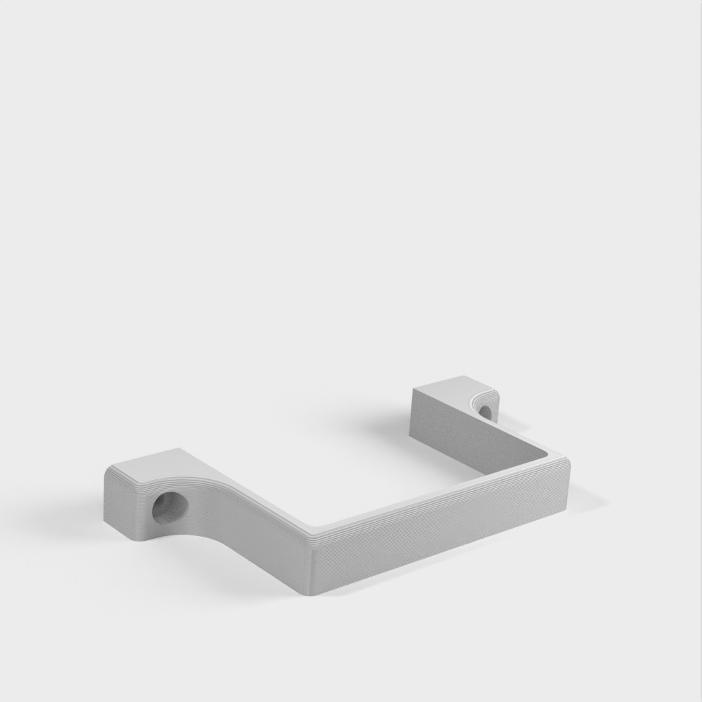 Dette er en holder til strømforsyningen til et Ikea Bekant sidde-/ståbord. Den er designet til montering under bordpladen, hvilket gør det muligt at skjule strømforsyningen og derved holde skrivebordsområdet pænt og organiseret.