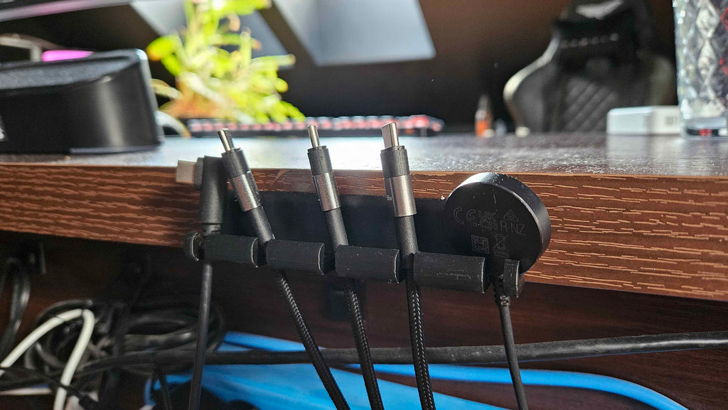 Med denne løsning er dine vigtigste kabler altid inden for rækkevidde, og du undgår frustrationen ved at lede efter den rigtige ledning. Optimer din daglige brug og opnå et mere ryddeligt og funktionelt rum med denne uundværlige organizer.